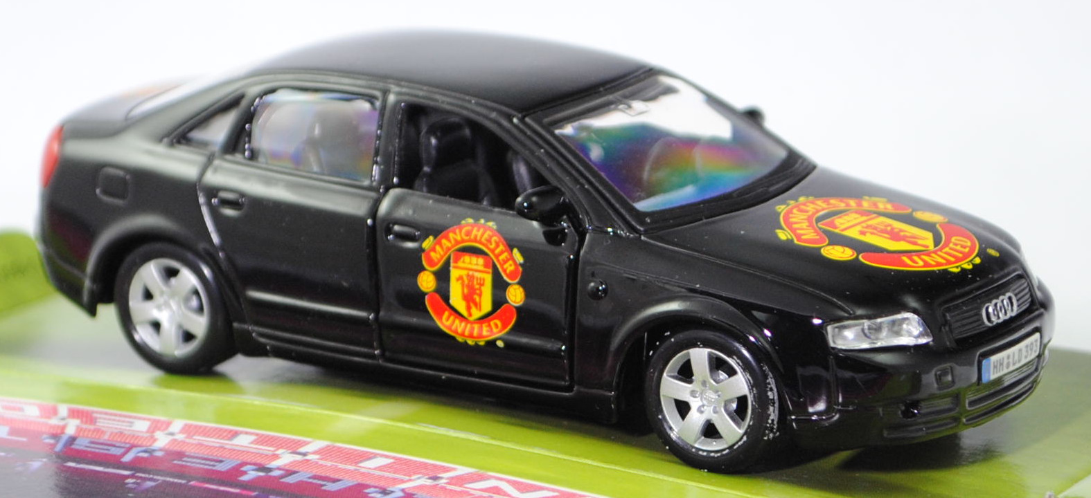 Audi A4 3.0 (Baureihe B6, Typ 8E, Vorfacelift, Modell 2000-2003), schwarz, MANCHESTER UNITED, Maisto, 1:43, mb