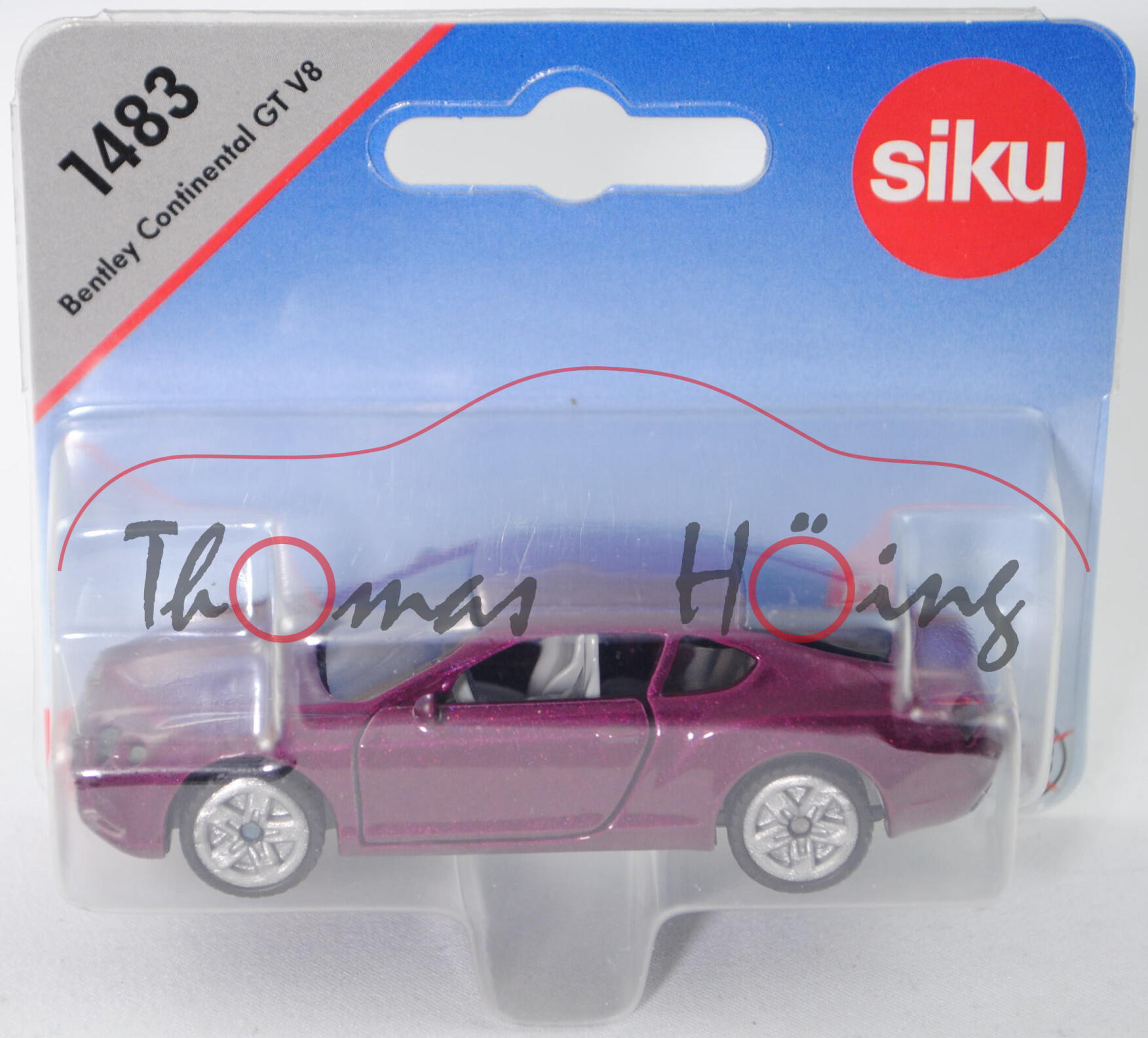 00002 Bentley Continental GT V8 S (2. Generation, Modell 2014-), bordeauxviolettmetallic, innen lichtgrau, Lenkrad lichtgrau, Verglasung rauch, B47 geschlossen silbergrau, SIKU SUPER, ca. 1:60, P29e (EAN 4006874014835)