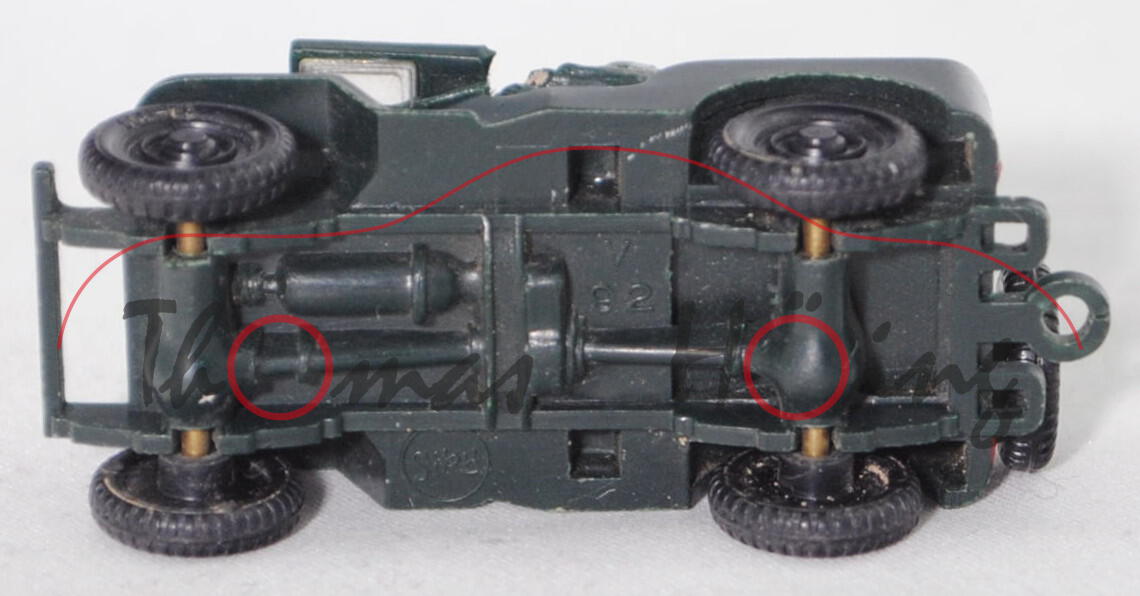 00001 Willys Jeep M38 / MC (Mod. 1949-1952), flaschengrün, Frontscheibe auf Motorhaube geklebt, Siku