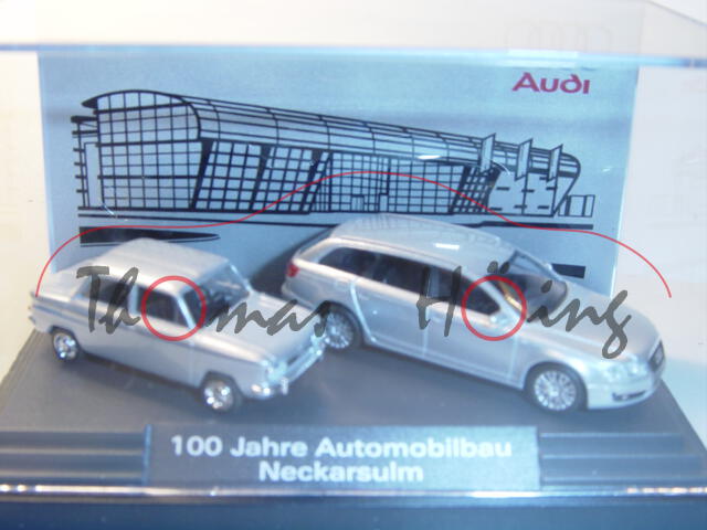 Audi A6 Avant mit NSU TT, Mj 2004, silber, Busch, 1:87, 100 Jahre Automobilbau Neckarsulm, PC-Box