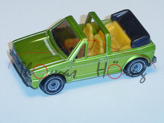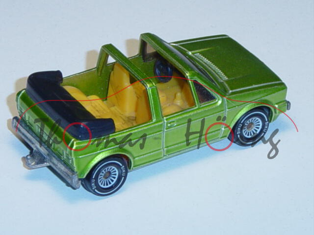 00002 VW Golf I Cabriolet GLS (Typ 155), Modell 1979-1987, gelbgrünmetallic, B4, mit AHK, Verglasung rauch, innen mit Bleistift angemalt