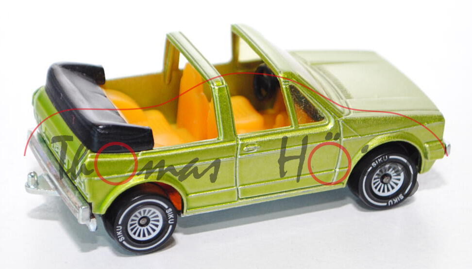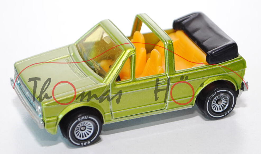 00001 VW Golf I Cabriolet GLS (Typ 155), Modell 1979-1987, gelbgrünmetallic, innen chromgelb, Lenkrad schwarz, Verglasung gelb, mit AHK, B4 (7,0 mm breit)