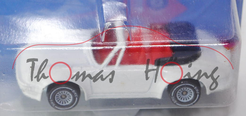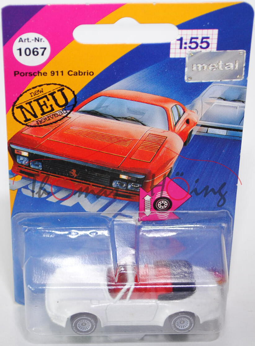 00000 Porsche 911 Carrera 3.2 Cabrio (G-Modell, Modell 1984-1986), reinweiß, innen verkehrsrot, Lenkrad verkehrsrot, Verdeck schwarz, Chassis chrom, Bpr. PORSCHE (Vorserienbodenplatte), W-Germ, B4, SIKU SUPER, ca. 1:54, P21 (EAN 4006874010677)