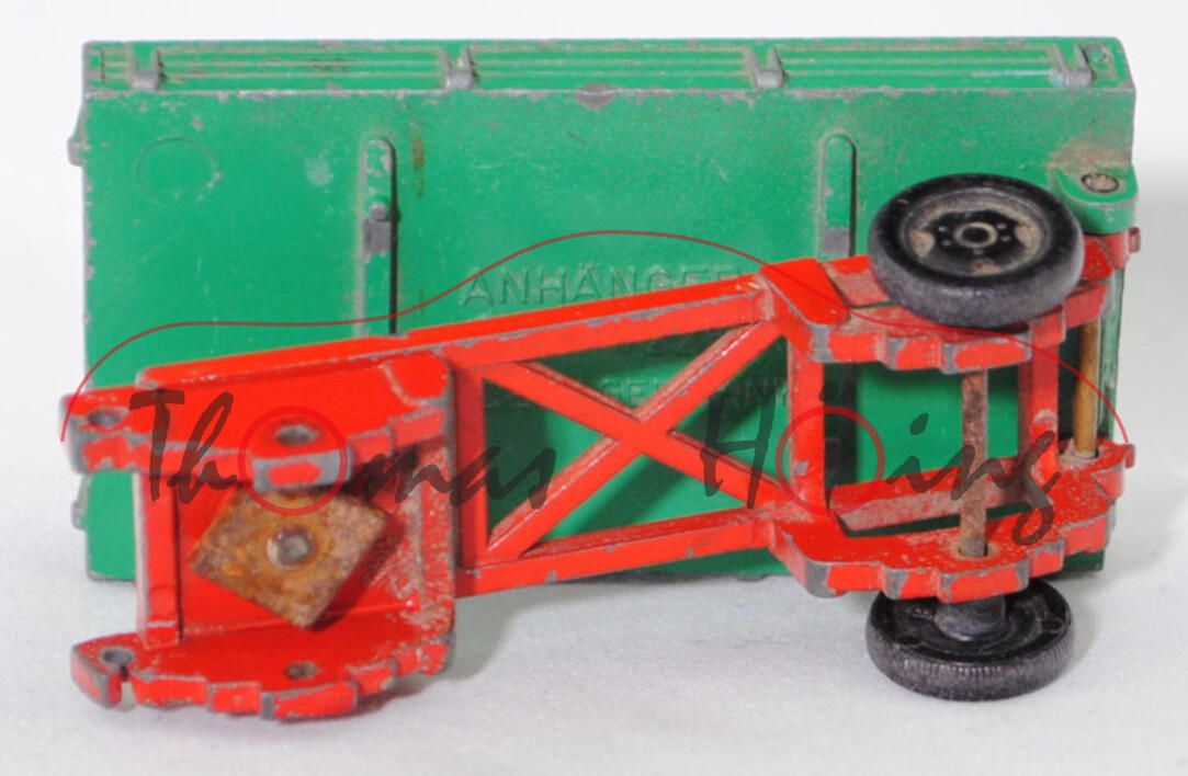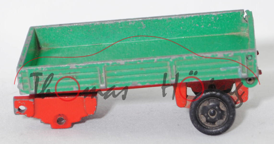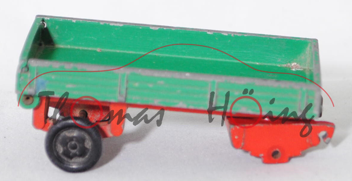 00000 2-Achs-Kippanhänger für LKW und Traktor (Baujahr 1963), Kippbrücke verkehrsgrün, Heckklappe ohne zwei schräge Streben, Hohlniete, LKW1, SIKU, 1:60, c