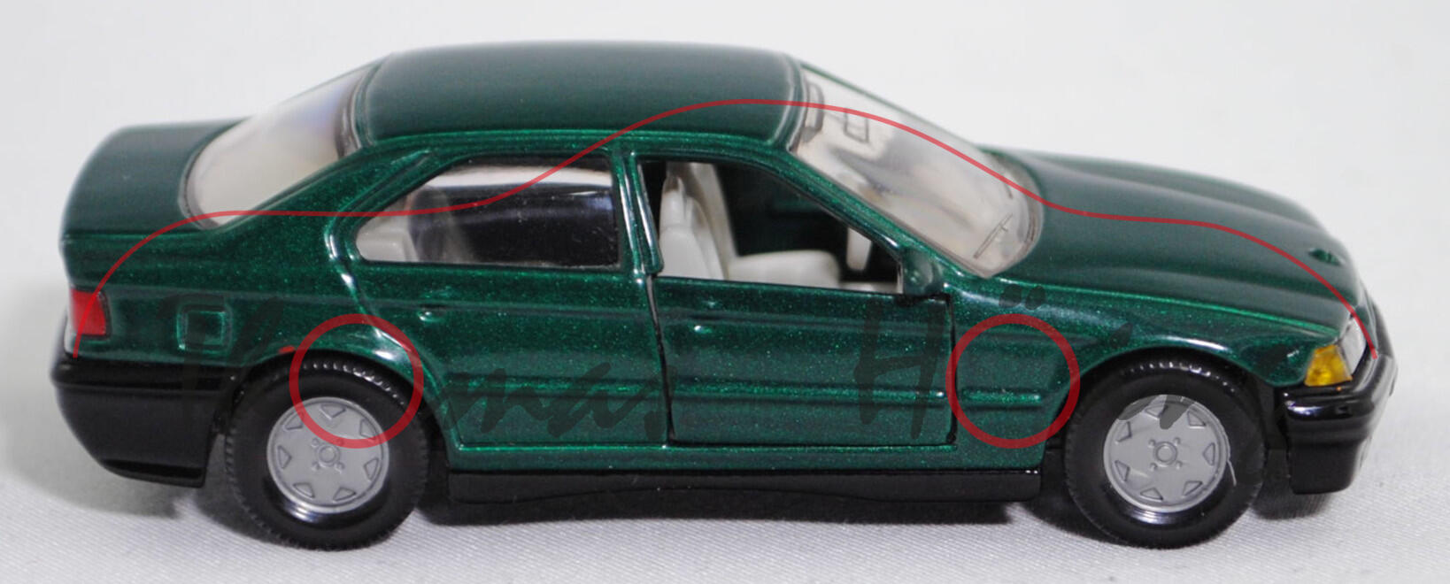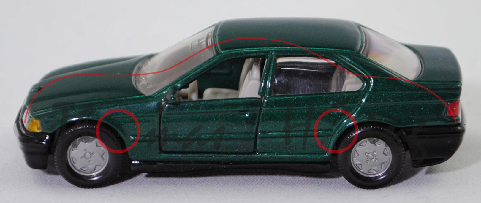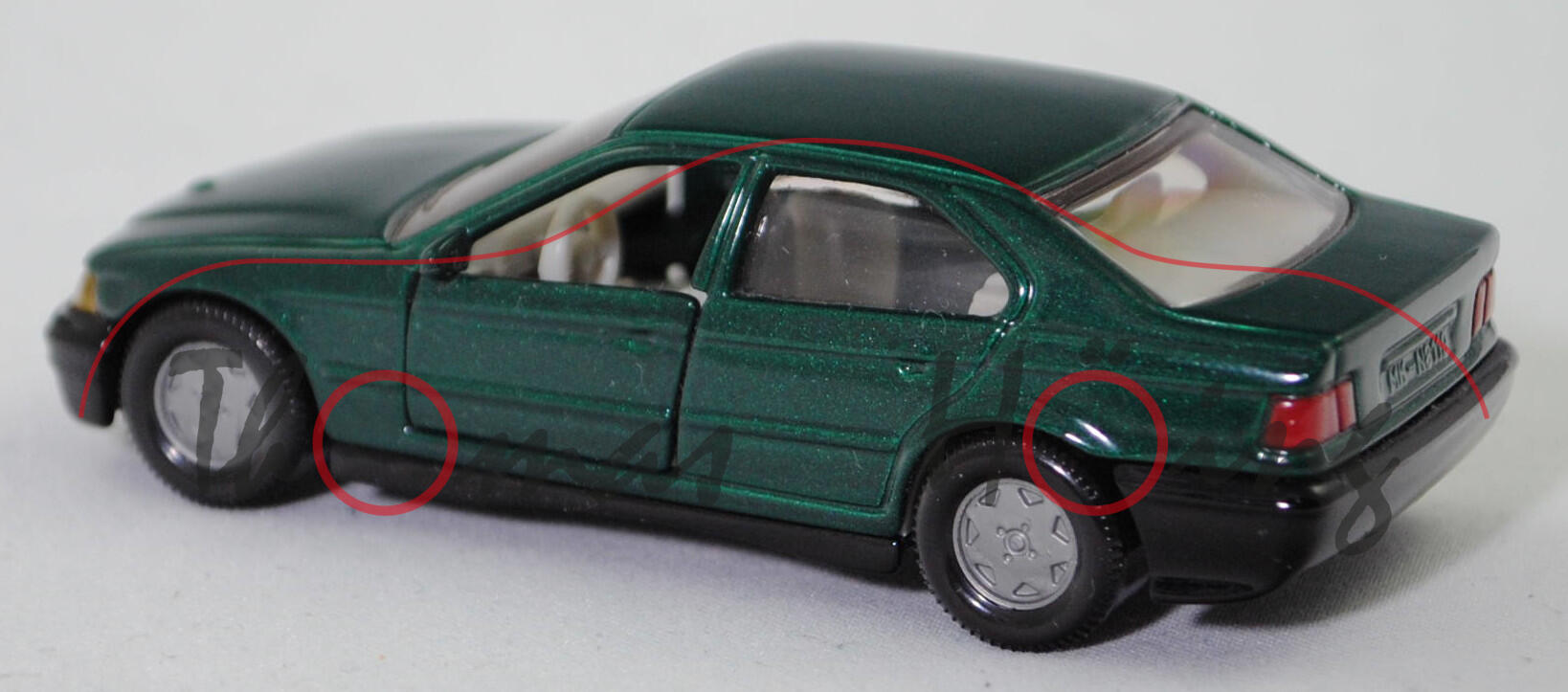 Produktinformationen "00000 BMW 325i Limousine (E36, Vorfacelift, Modell 1990-1992), moosgrünmetallic (lagunengrün metallic), Bpr. BMW 320i, B6, SIKU SUPER, 1:55, m"