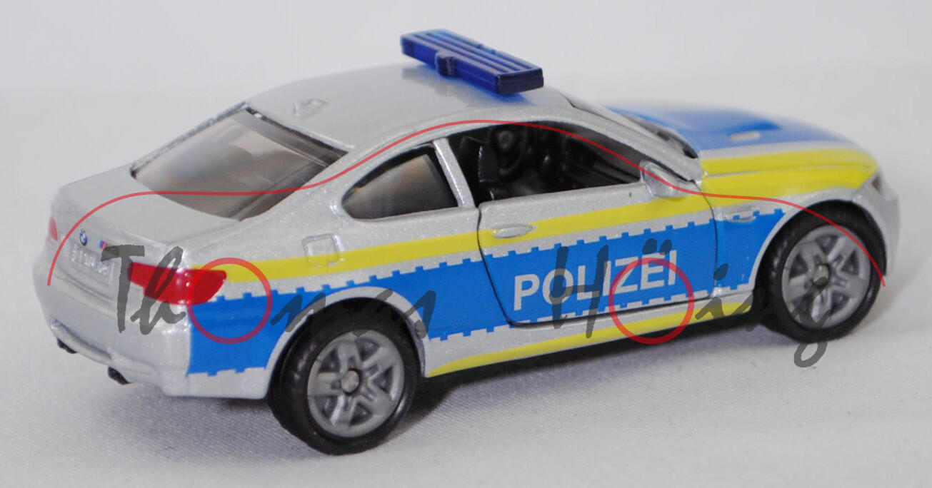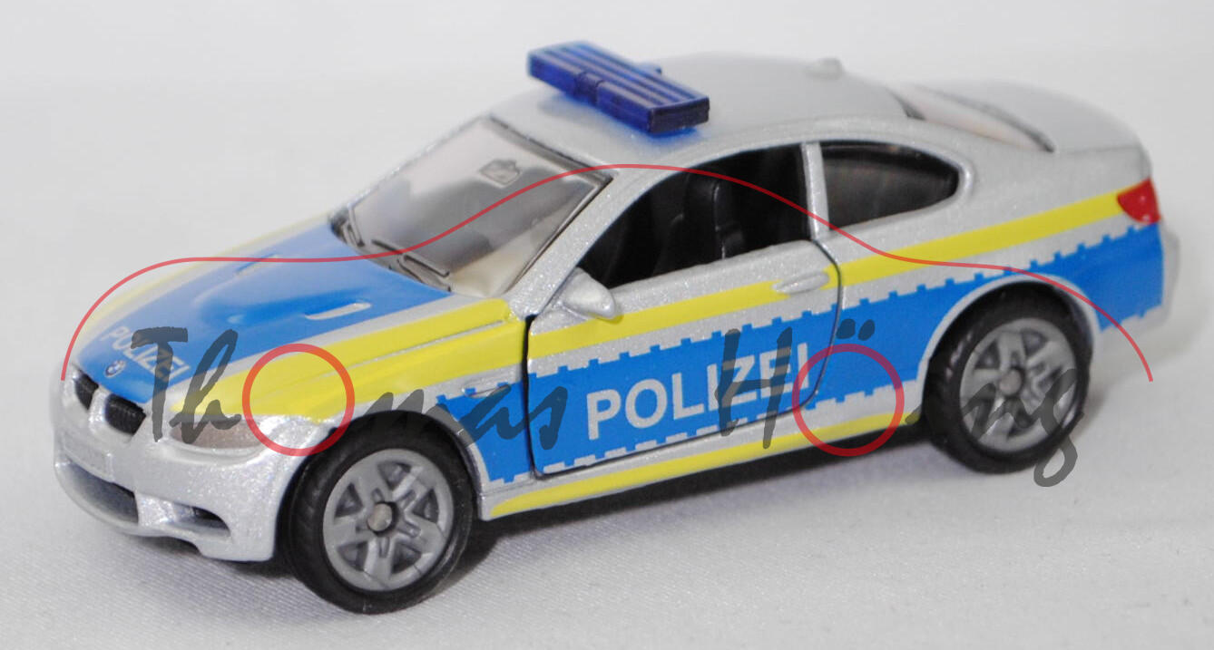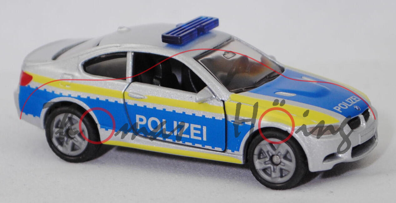 00000 BMW M3 Coupé (4. Generation M3, E92, Modell 2010-2013) Polizei, weißaluminiummetallic, POLIZEI, B47 geschlossen silbergrau, SIKU SUPER, 1:58, P29f