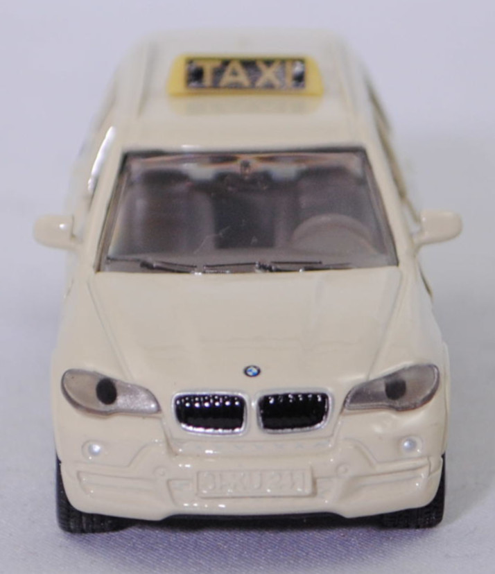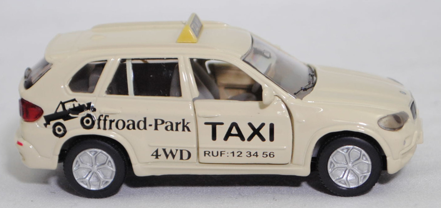 00000 BMW X5 3.0si / xDrive30i (E70, Modell 2006-2008) Taxi-Geländewagen, hellelfenbein, TAXI / RUF:12 34 56 / Offroad-Park / 4WD, SIKU SUPER, 1:58, m