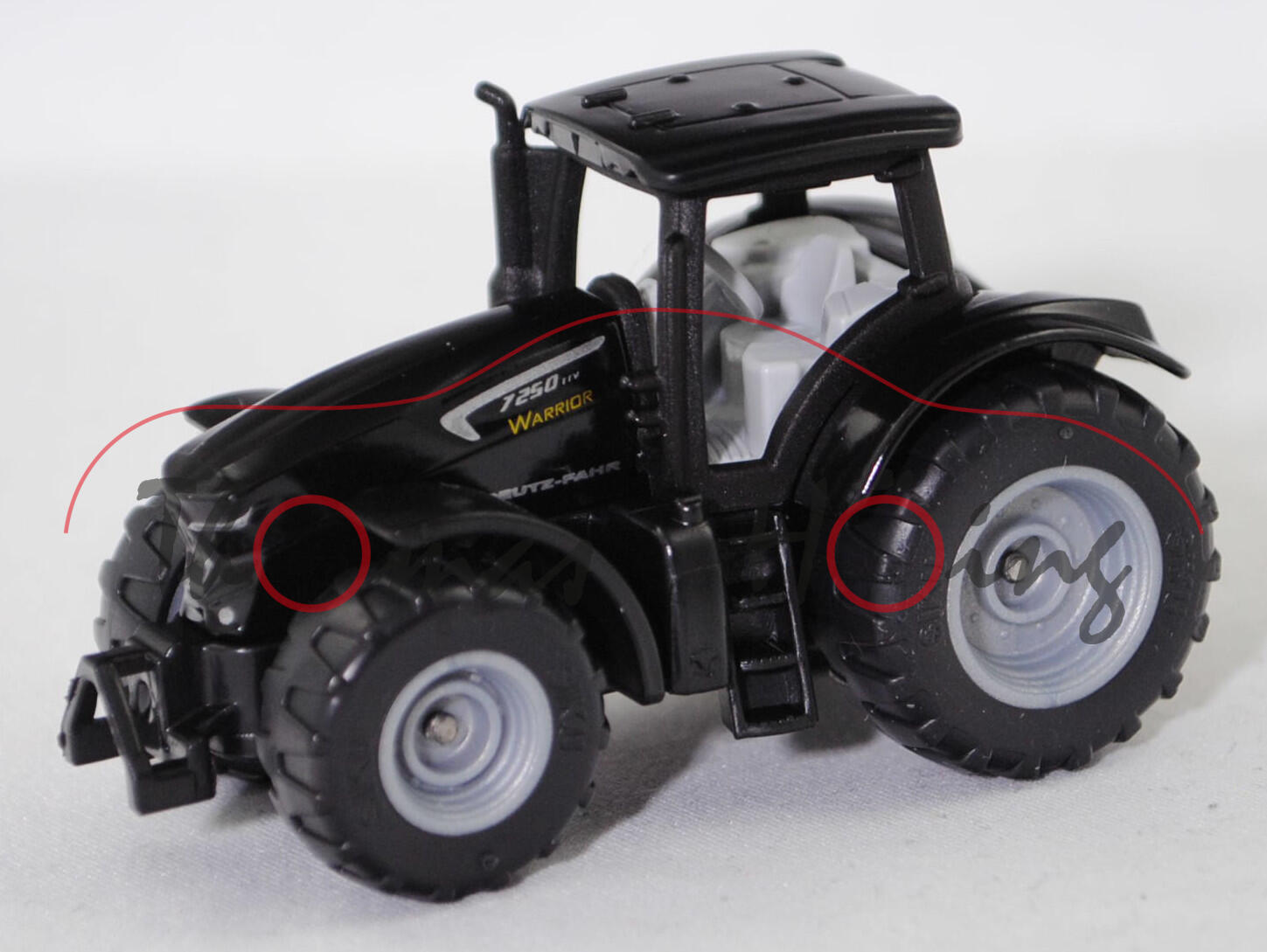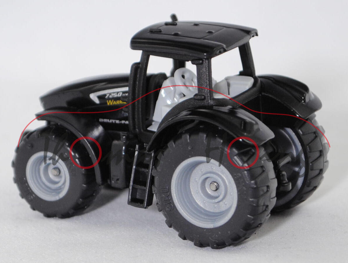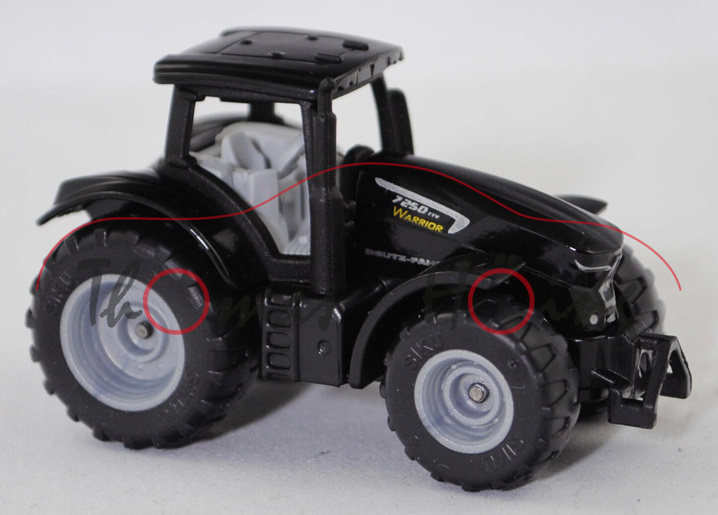 00000 DEUTZ-FAHR 7250 TTV Agrotron Warrior (Modell 2016-) Traktor, schwarz (vgl. brillantschwarz beim Original), C77 silbergrau / C78 silbergrau, SIKU SUPER, 1:77, P29f
