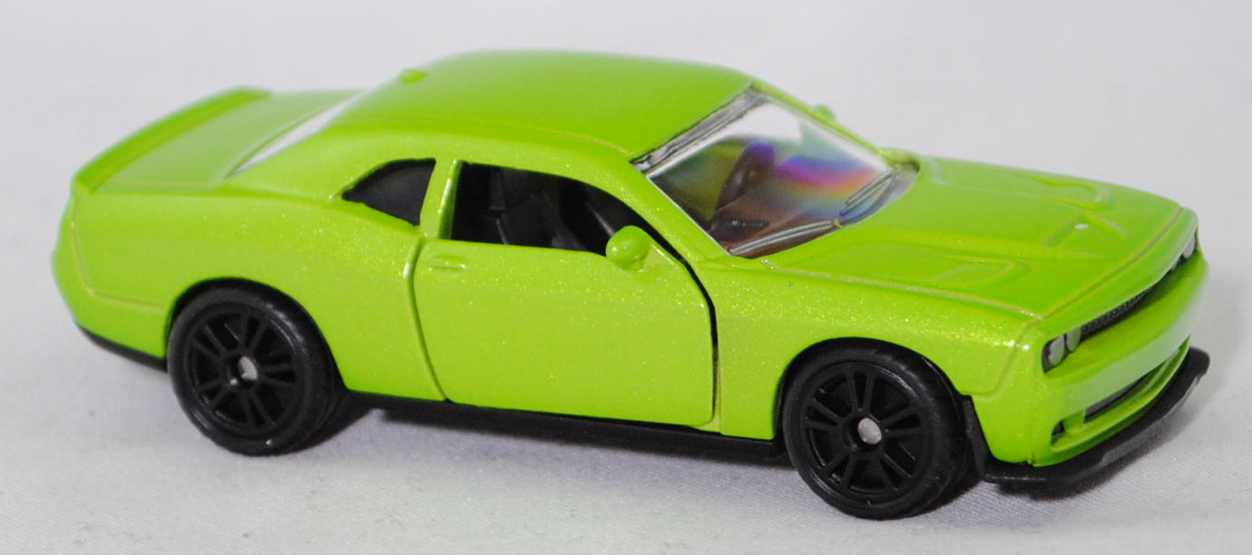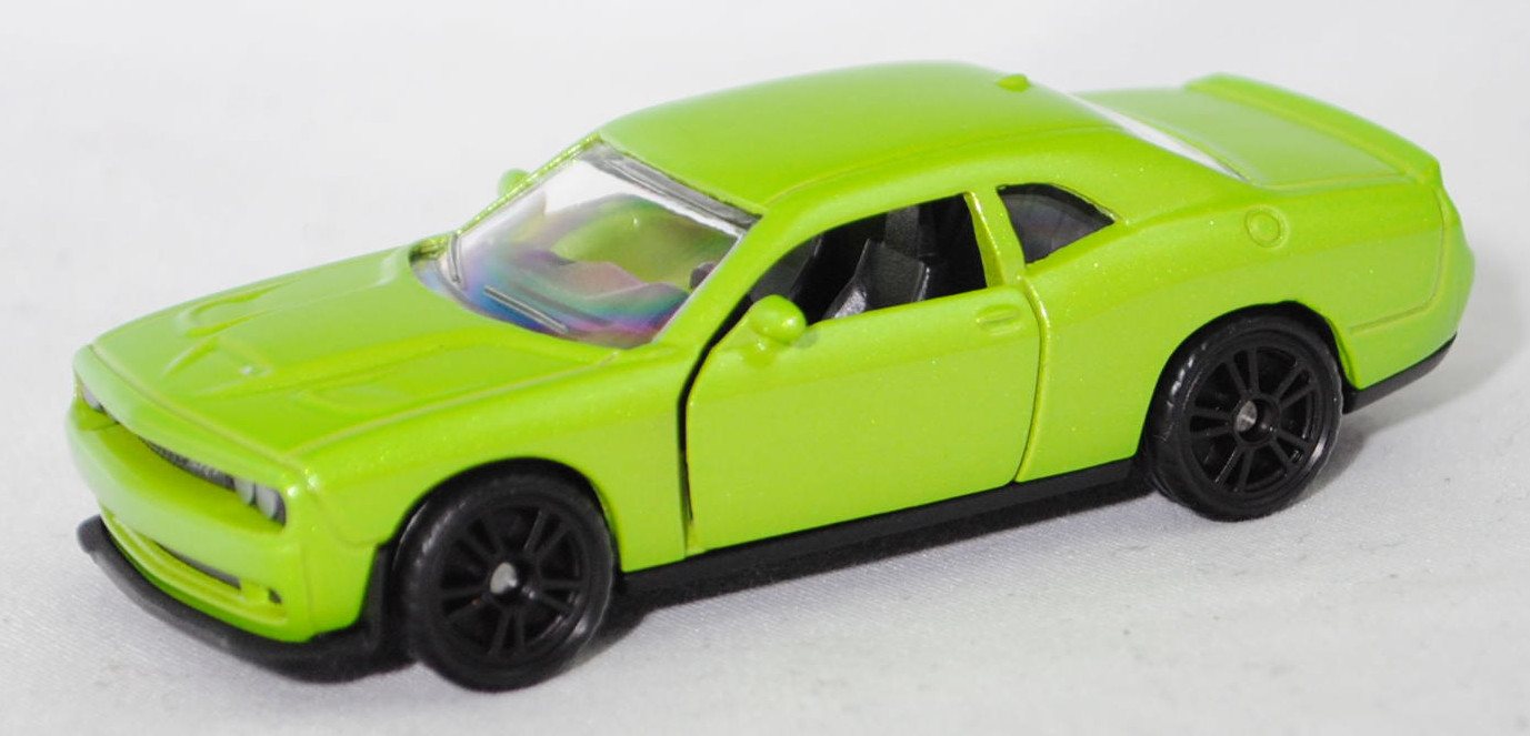 00000 Dodge Challenger SRT Hellcat (3. Generation, Facelift 2014, Modell 2014-2018), hell-gelbgrünmetallic, B49 schwarz, SIKU SUPER, 1:63, P29f