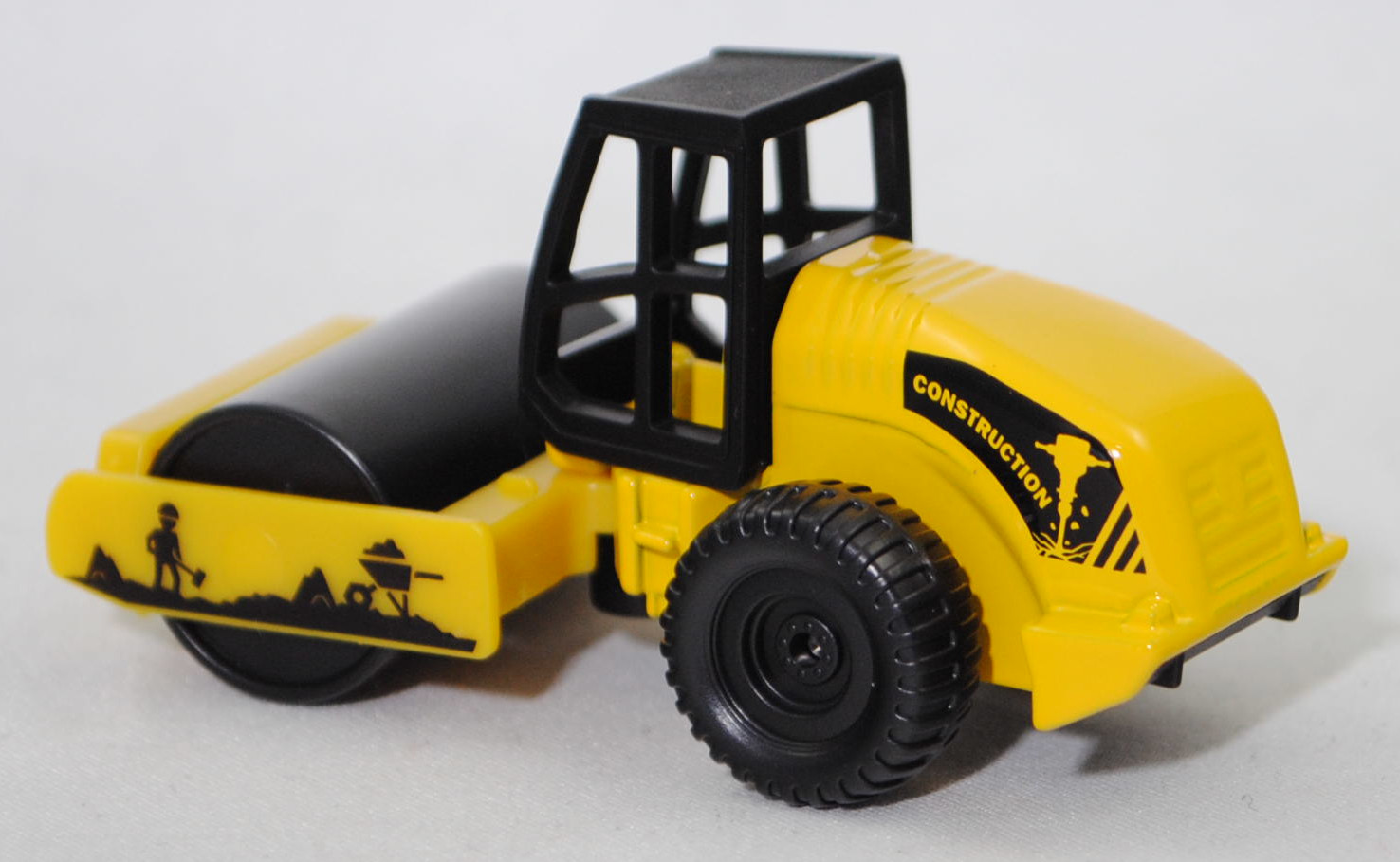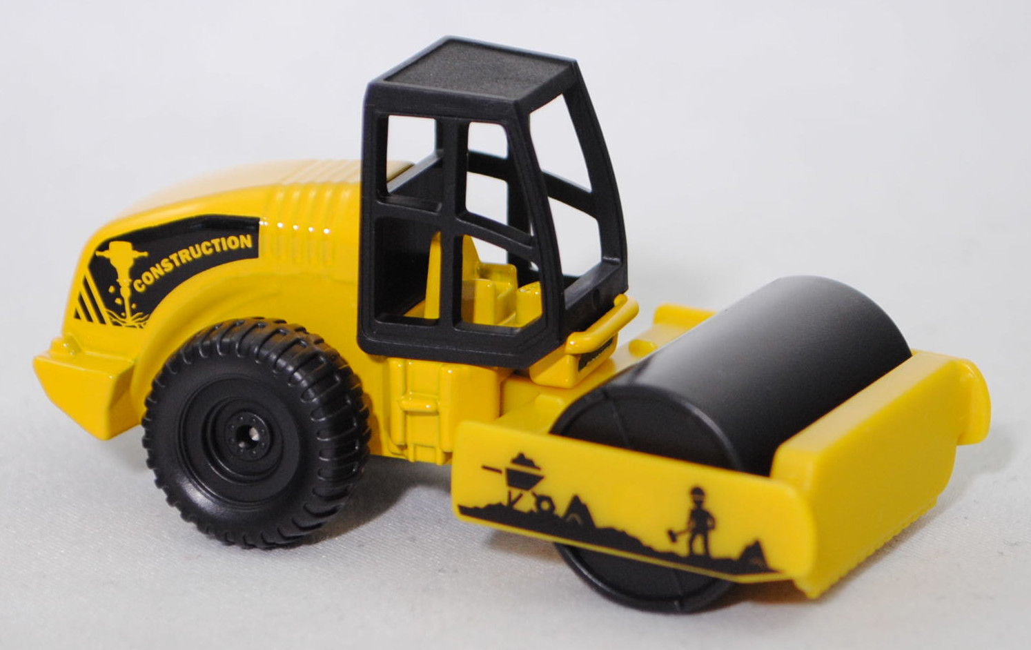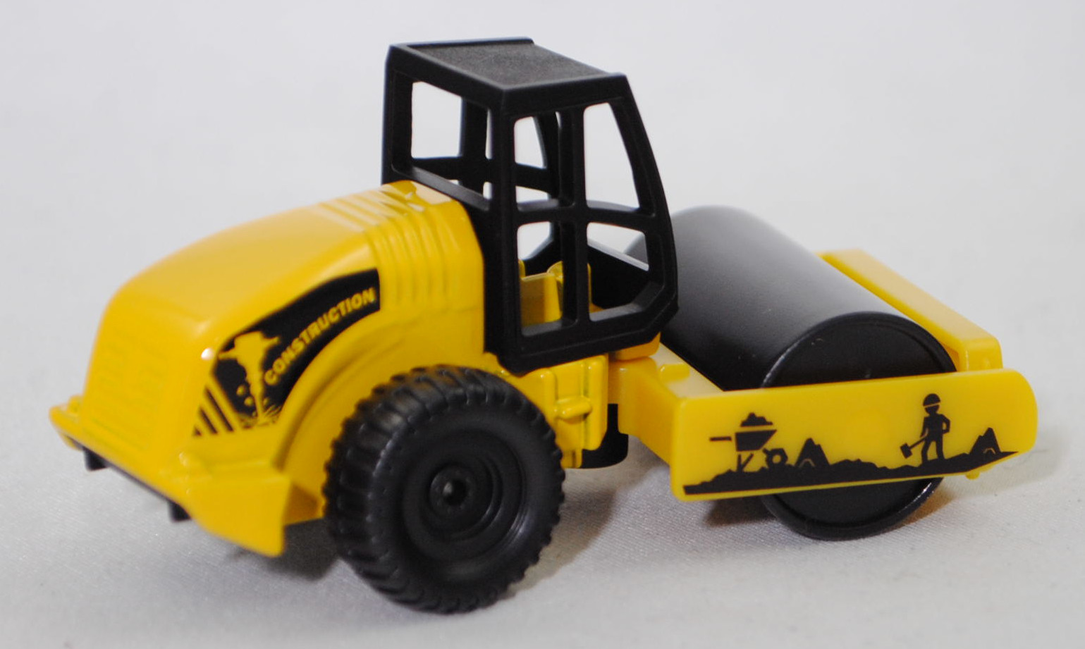 00000 HAMM 3625 HT Walzenzug mit Vibrationsglattbandage und HAMMTRONIC (Baureihe Serie 3000, Typ Walzenzug, Fahrerkabine ROPS, Eigengewicht 24785 kg, hydrostatischer Allradantrieb, Motor: Deutz BF6M 1013 EC stehender wassergekühlter Sechszylinder-Reihen-Viertakt-Turbo-Diesel mit Direkteinspritzung und eine seitlich obenliegende Nockenwelle mit CIH-Ventilsteuerung (Cam-in-Head = Nockenwelle im Zylinderkopf) und 2 Ventile pro Zylinder sowie Ladeluftkühler und 7145 cm³ sowie 236,7 PS, Achsabstand 3230 mm, Länge 6355 mm, Modell 2000-2007) (Straßenwalze), Hinterwagen und Abstreifer verkehrsgelb, Fahrerkabine schwarz ohne Verglasung, Sitz verkehrsgelb, Lenkrad verkehrsgelb, Druck Baustelle mit Arbeiter und Schubkarre in schwarz auf den Seiten des Abstreifers, schwarzer Druck auf den Seiten des Hinterwagens wobei CONSTRUKTION in Wagenfarbe durchschimmert, Bpr. siku hinter dem Gelenk, Druck Chargennummer mittig unter der Hinterachse, Vibrationsglattbandage schwarz mit schwarzem Innenteil, C79 schwarz, SIKU SUPER, ca. 1:93, P29f (EAN 4006874008957)