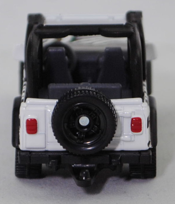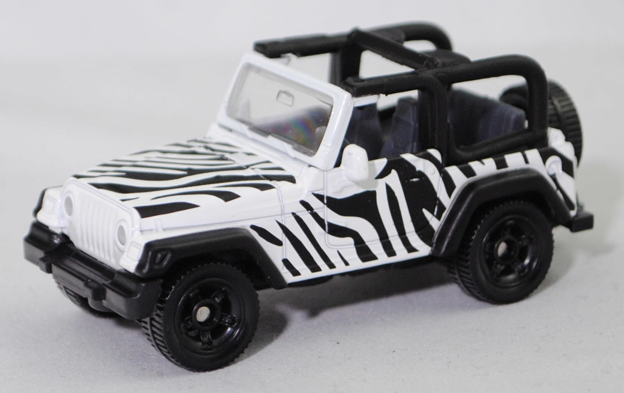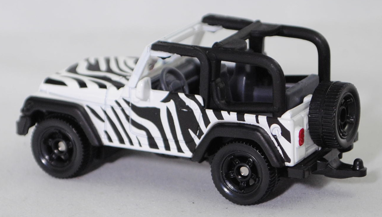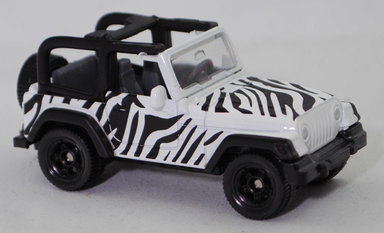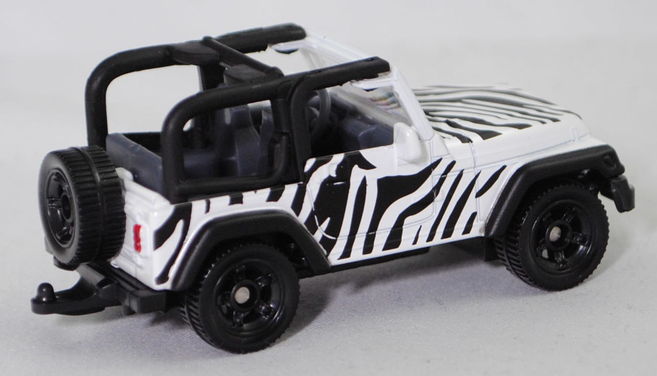 00000 Jeep Wrangler Sport 4.0 (2. Generation, Baureihe TJ, Facelift 2002, Modell 2002-2006) Safari, reinweiß, Druck Streifen in schwarz, SIKU SUPER, 1:55, P29f