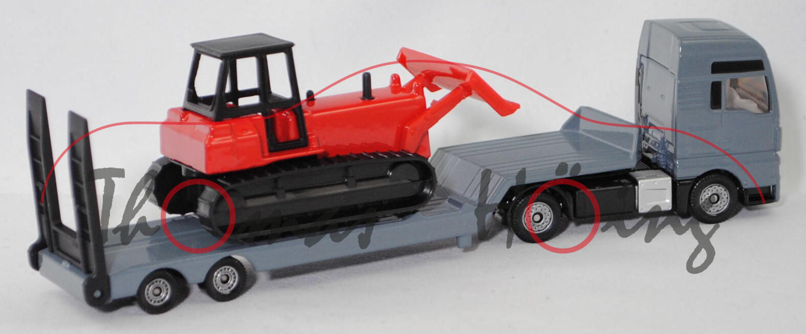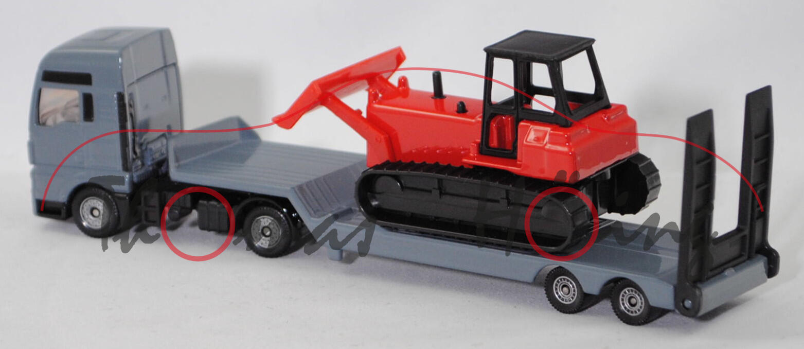 00000 MAN TGX 18.580 D38 XXL (Mod. 17-19) mit Sattelauflieger und Planierraupe, hell-blaugrau und verkehrsrot, SIKU, 1:87, L17mpK