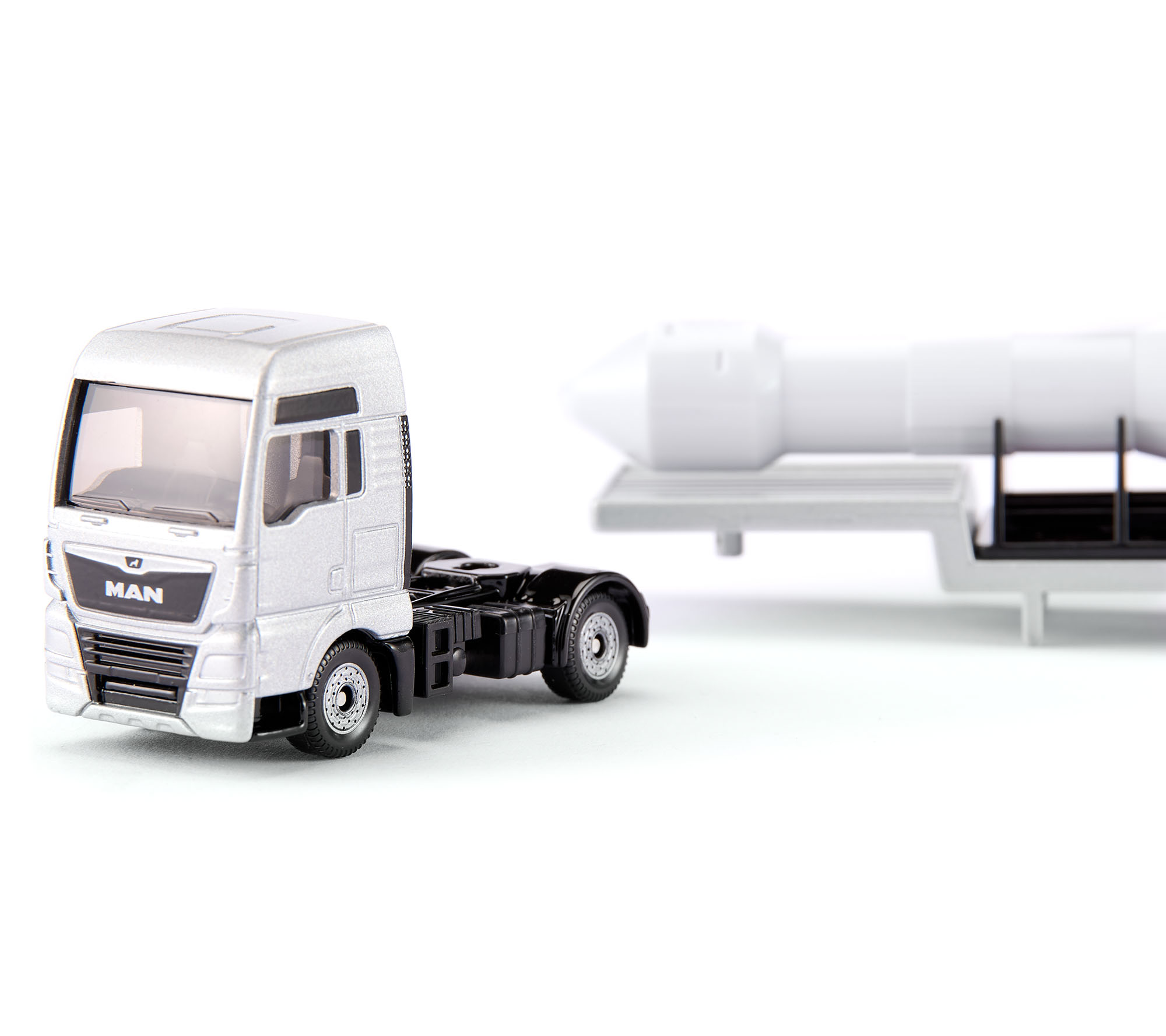 00000 MAN TGX 18.580 D38 XXL (Modell 2017-2019) Sattelzugmaschine und Sattelauflieger mit Rakete (Modell 22.01.1990 - 03.12.1999), silbergraumetallic, esa, SIKU SUPER 1:87, L17mpK