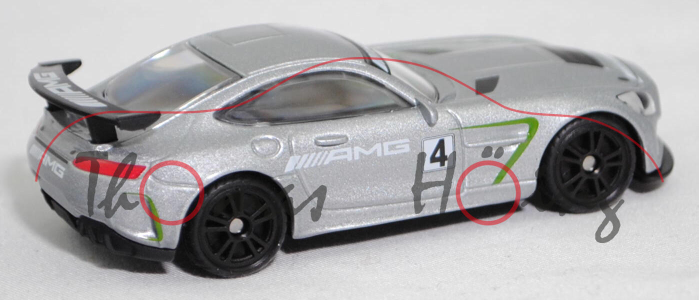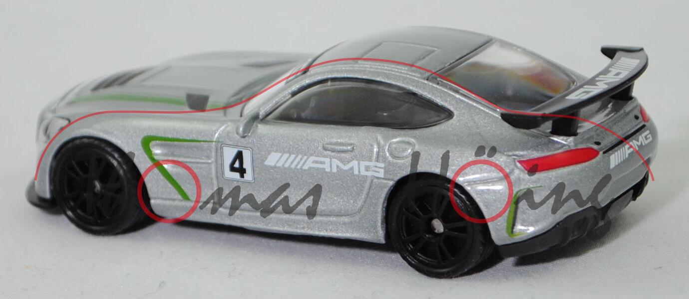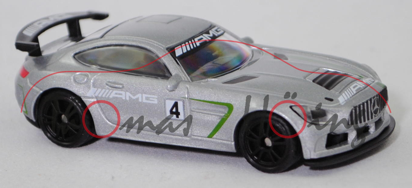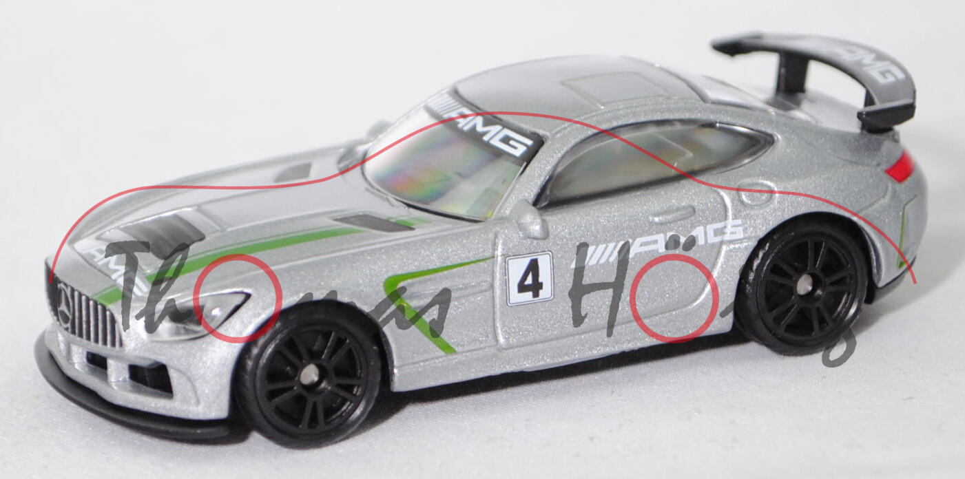 00000 Mercedes-AMG GT4 (Baureihe C 190, Modell 2017-), blausilbermetallic, innen schwarz, AMG / Startnummer 4, B49 schwarz, SIKU SUPER, 1:58, P29f
