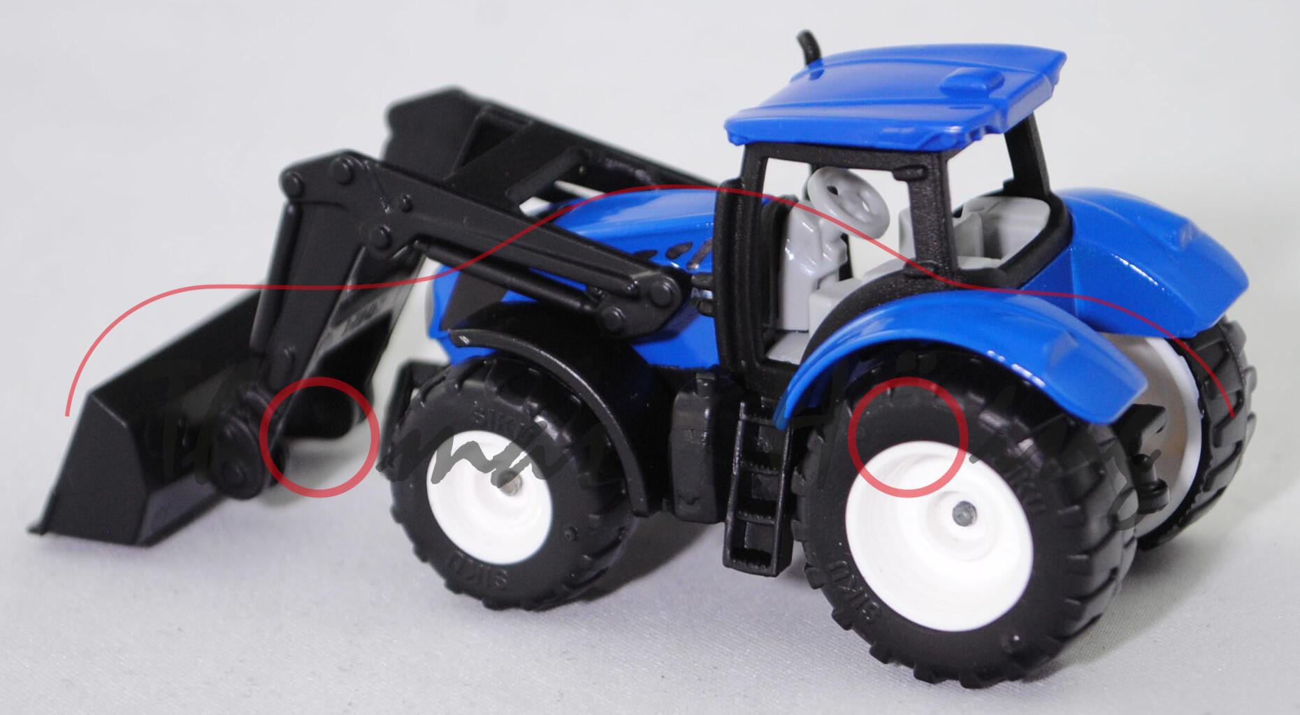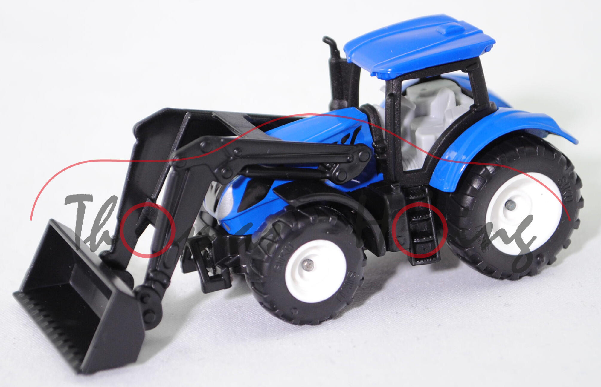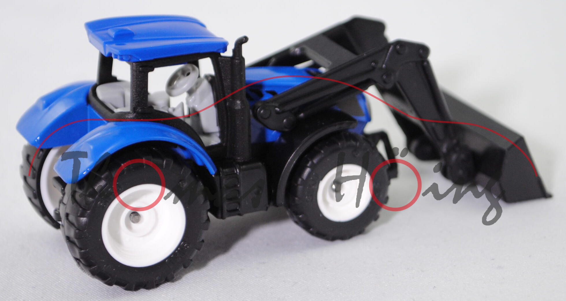 00000 New Holland T7.315 AC (1. Generation, Modell 2015-2021) Traktor mit Frontlader, hell-signalblau/schwarz, SIKU SUPER, 1:79, P29f
