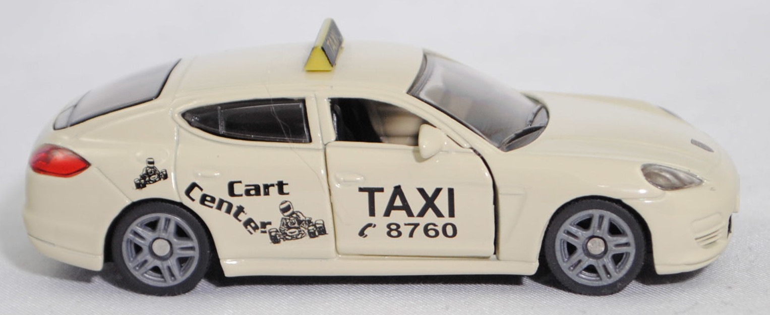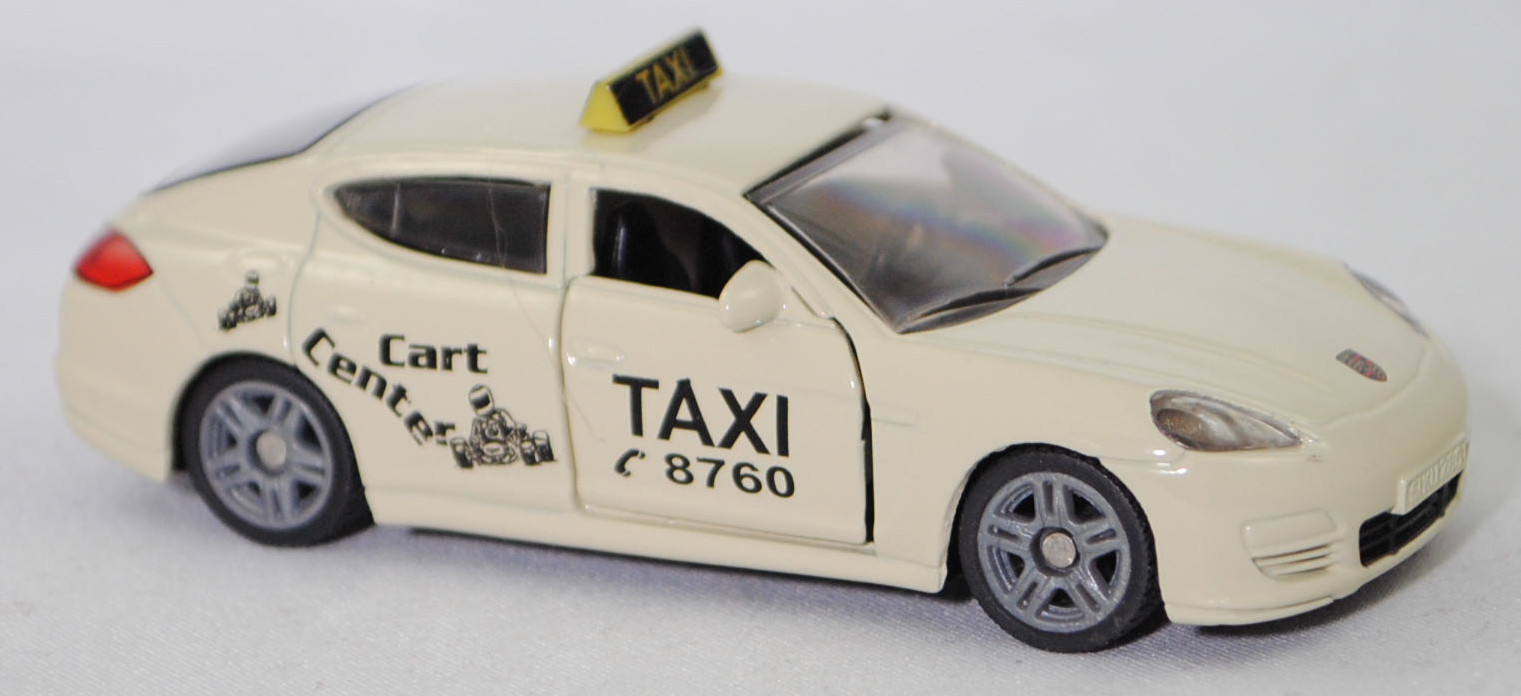 00000 Porsche Panamera 4S (Typ 970, Vorfacelift, Modell 2009-2013) Taxi, hellelfenbein, TAXI / C 8760 / Cart / Center, SIKU SUPER, 1:58, m