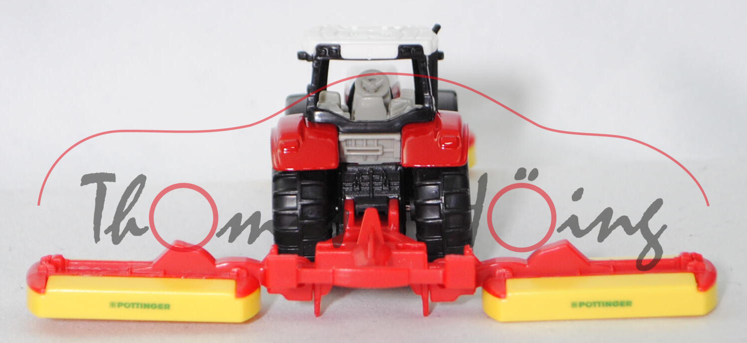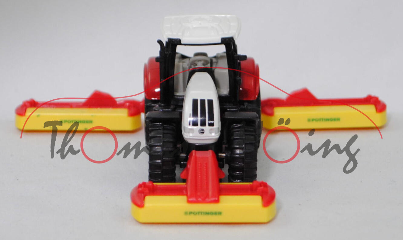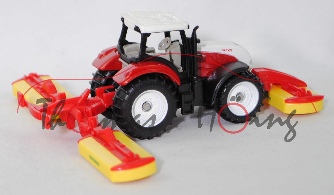 00000 Steyr 6230 CVT ecotech (Modell 2011-2015) mit PÖTTINGER Scheibenmäher-Kombination NOVACAT V10 (Modell 2008-2016), weiß/rot + rot/gelb, SIKU SUPER, P29f