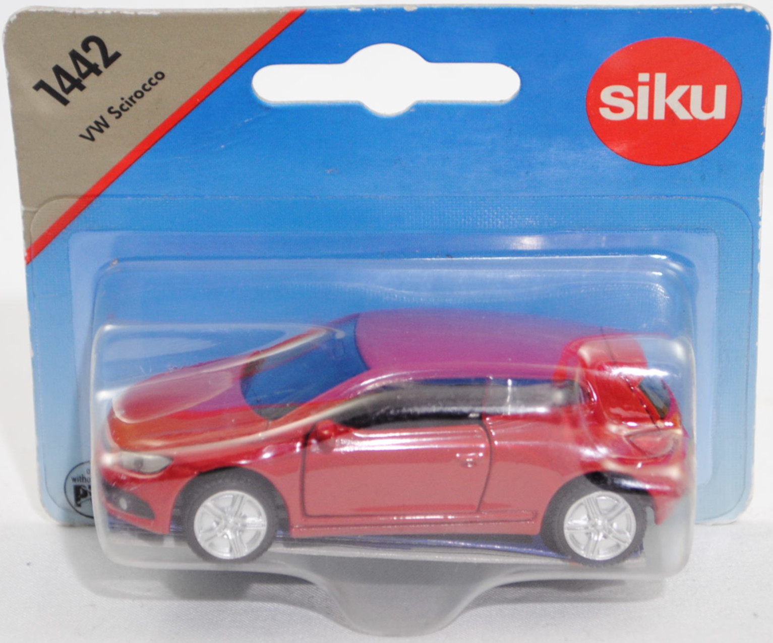 Produktinformationen "00000 VW Scirocco III 2.0 TSI (3. Generation, Typ 13, Vorfacelift, Modell 2009-2014), karminrot, B36a silber, SIKU SUPER, 1:55, P29a"