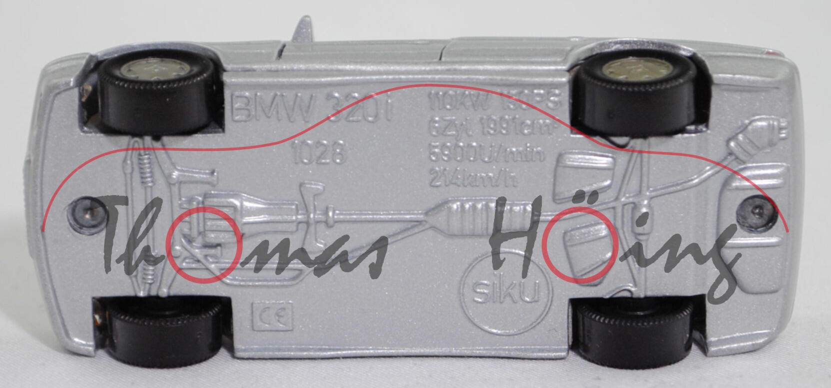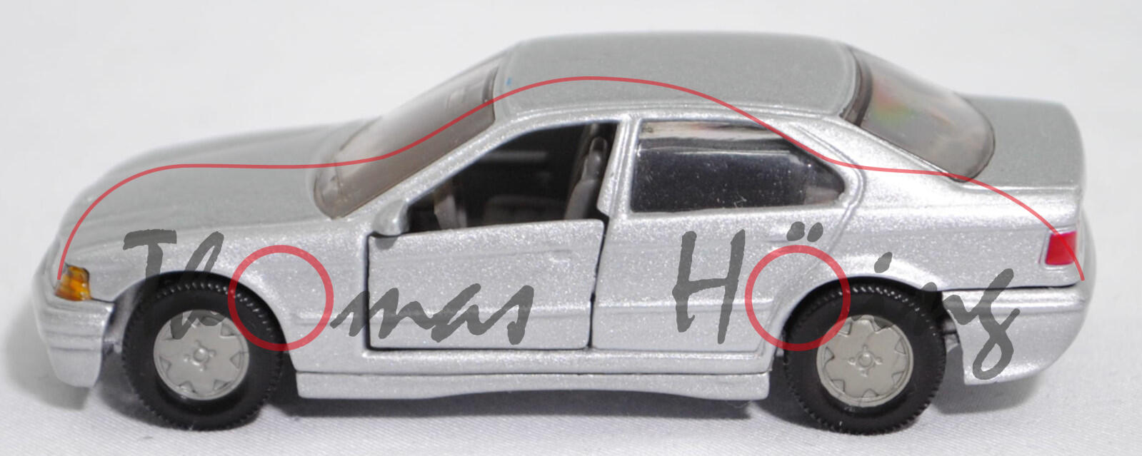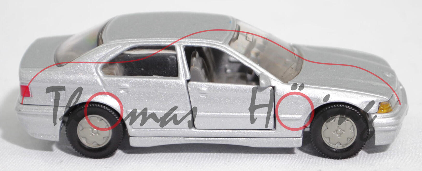 00001 BMW 325i Limousine (E36, Vorfacelift, Modell 1990-1992), silbergraumetallic (sterlingsilber metallic), Bpr. BMW 320i, B6, SIKU SUPER, 1:55, m