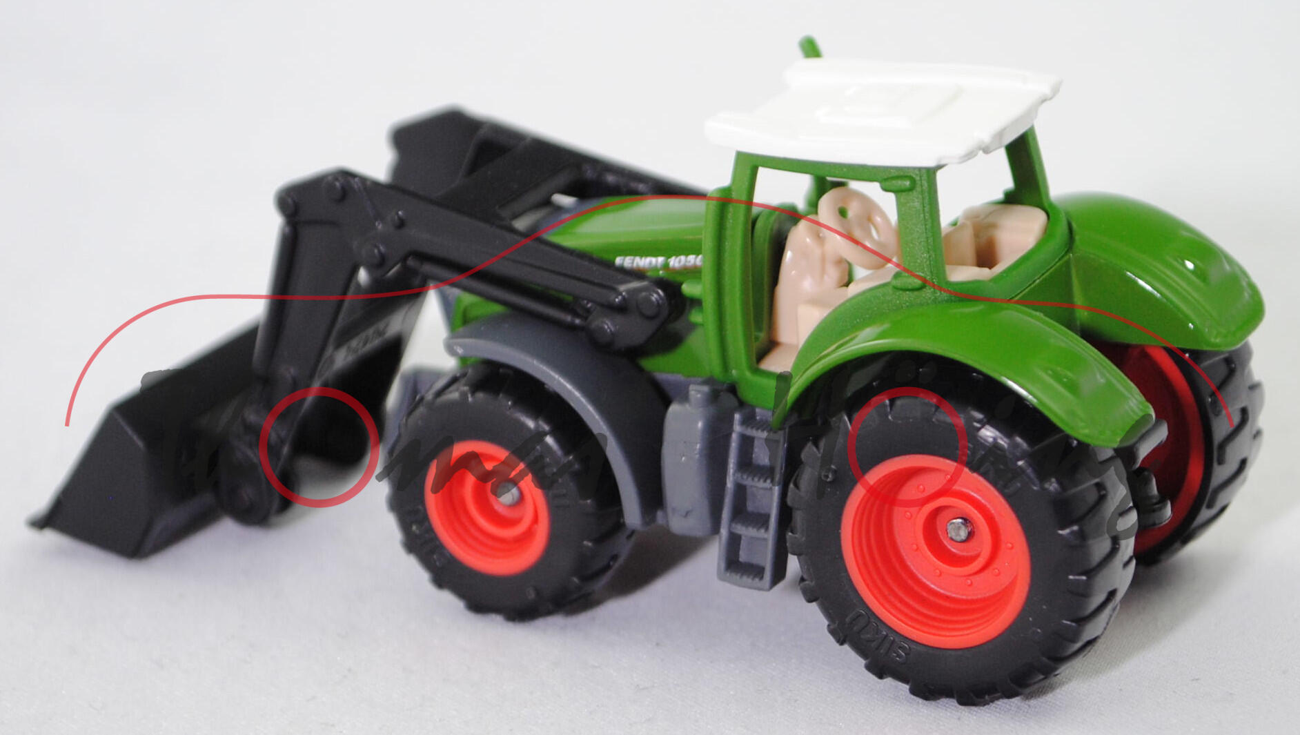 00001 Fendt 1050 Vario ProfiPlus (FWA 530.23, Modell 2019-2021) mit Frontlader, grün, Frontlader mit Schaufel mattschwarz, zusätzlicher Druck FENDT im Kühlergrill, SIKU, 1:87, P29f