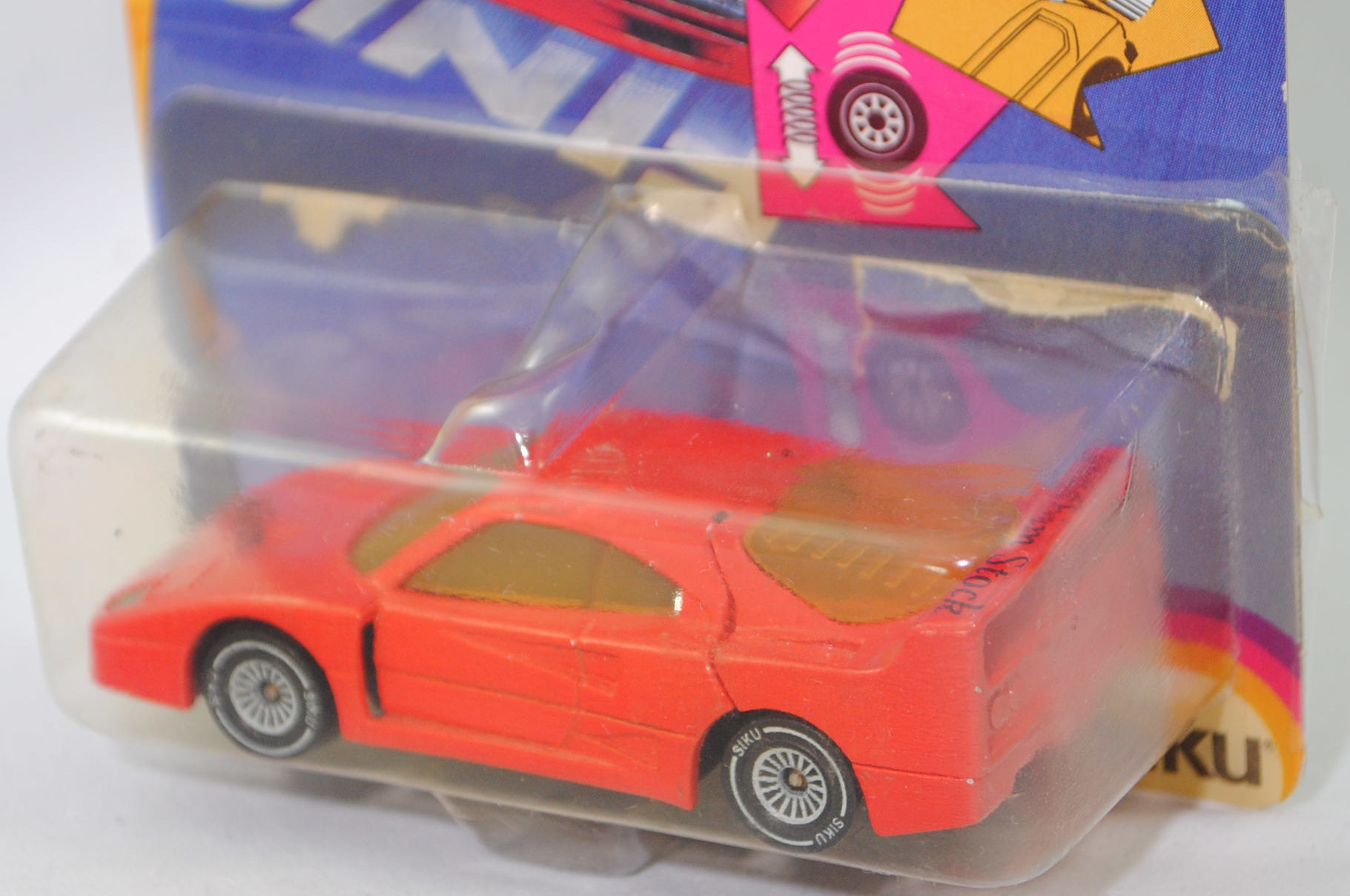 Produktinformationen "00001 Stock Ferrari F40 (Typ F120, Modell 1987-1992), verkehrsrot, Joachim Stock und Jubiläum / 40, Chassis chrom, W-Germ, ohne CE-Zeichen, B4, SIKU SUPER, 1:56, P21 vergilbt"