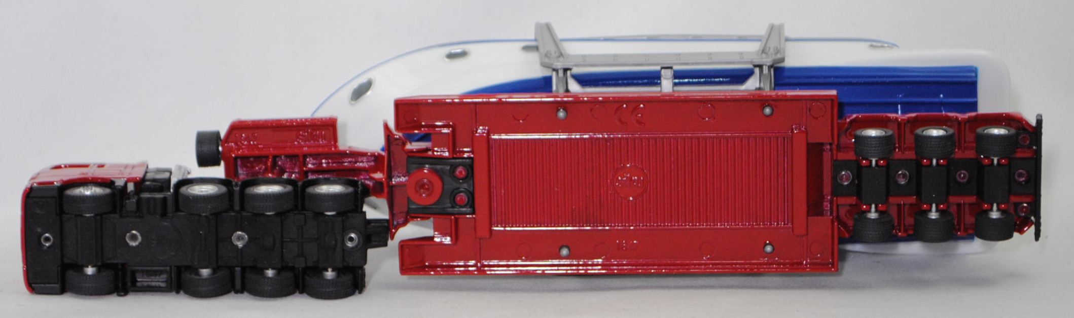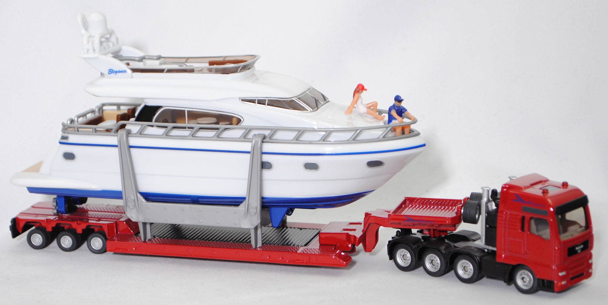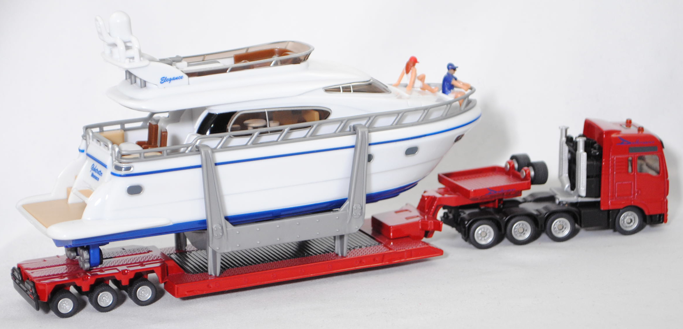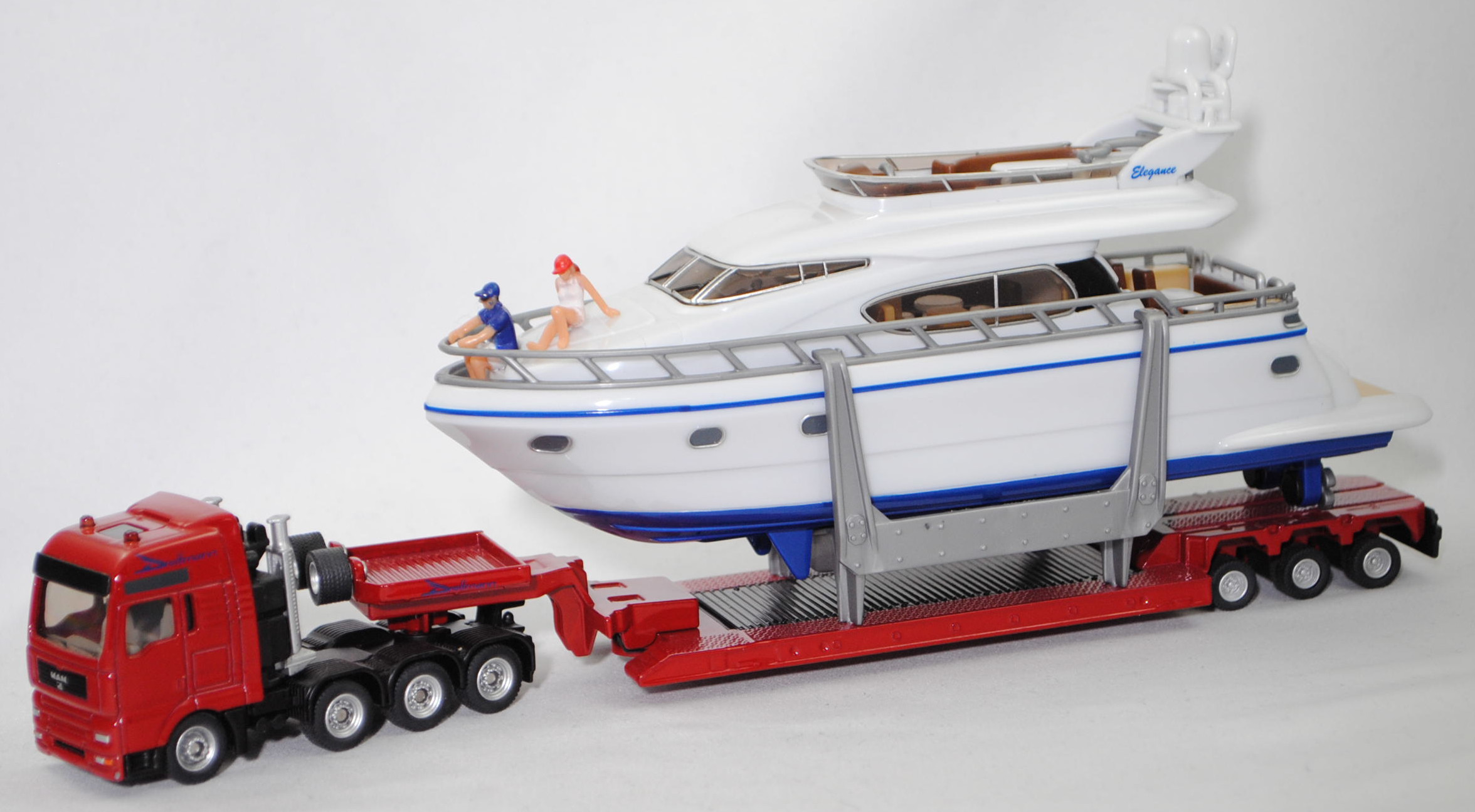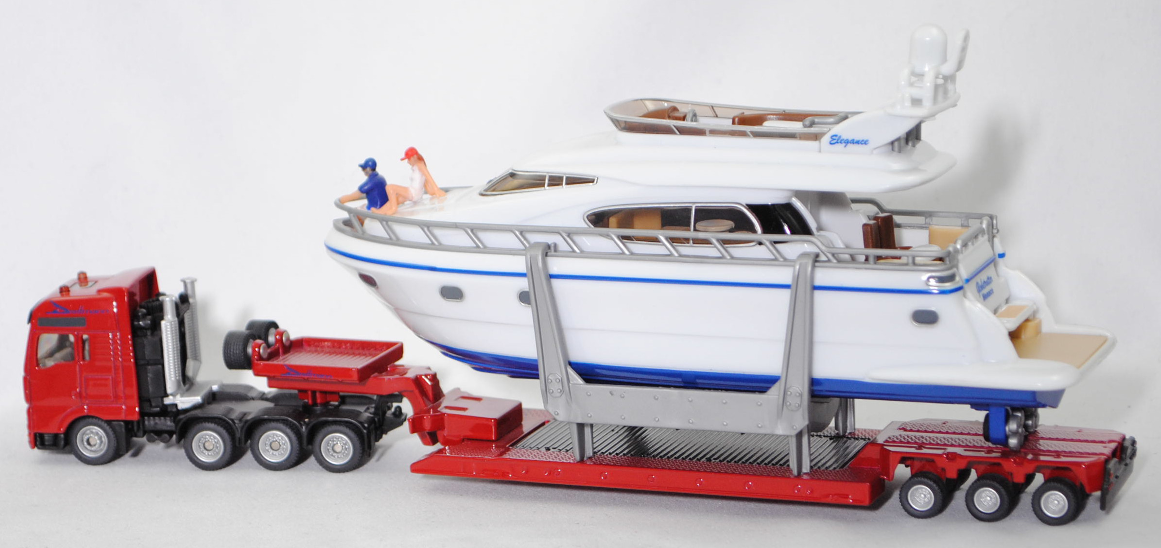 00002 MAN TGA 41.660 XXL 8x4/4 Schwertransport mit Yacht Elegance 54 (Baujahr 2005), rot/schwarz, Drettmann, ohne Chargennummer, C27c / C28c, SIKU SUPER 1:87, L17mpK