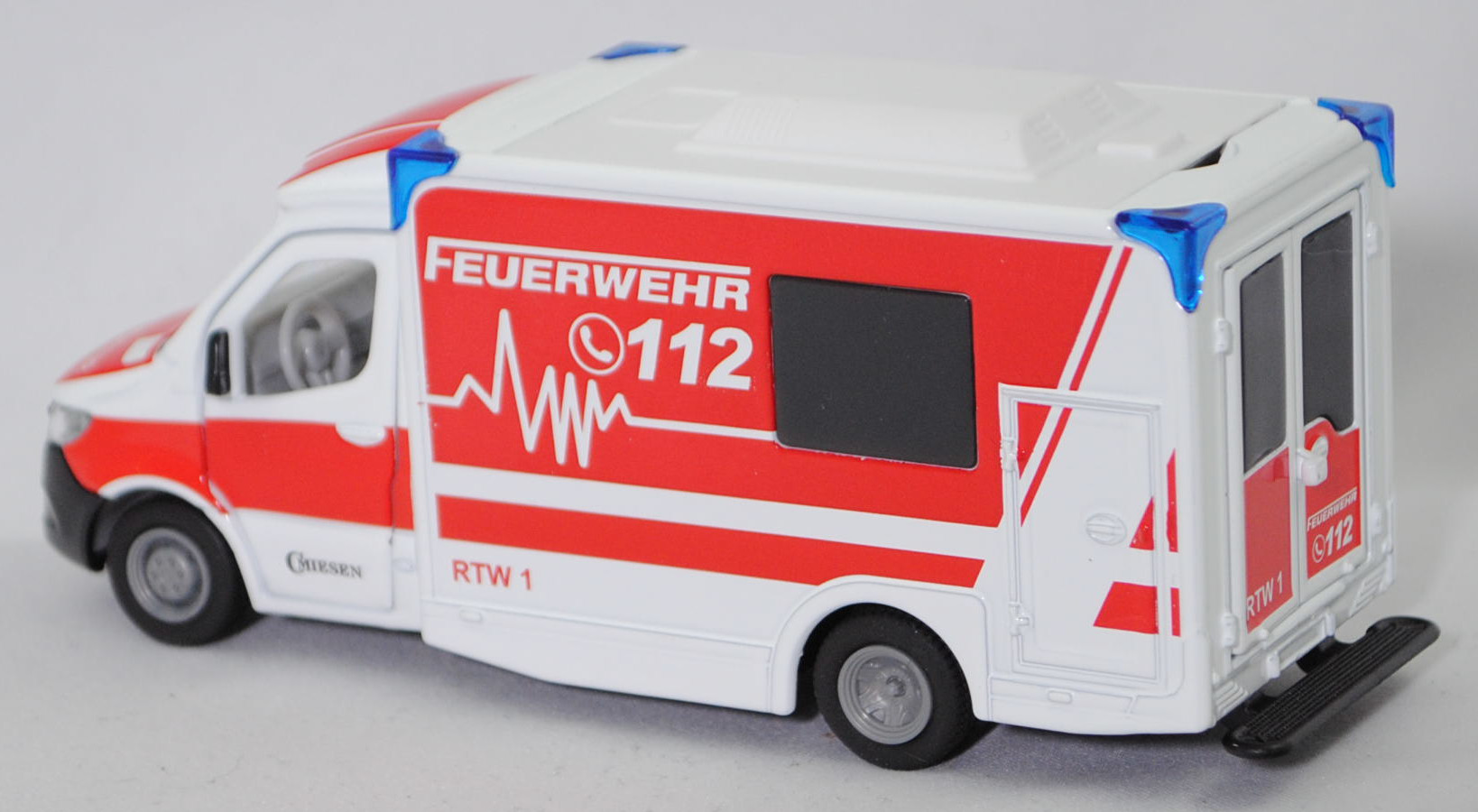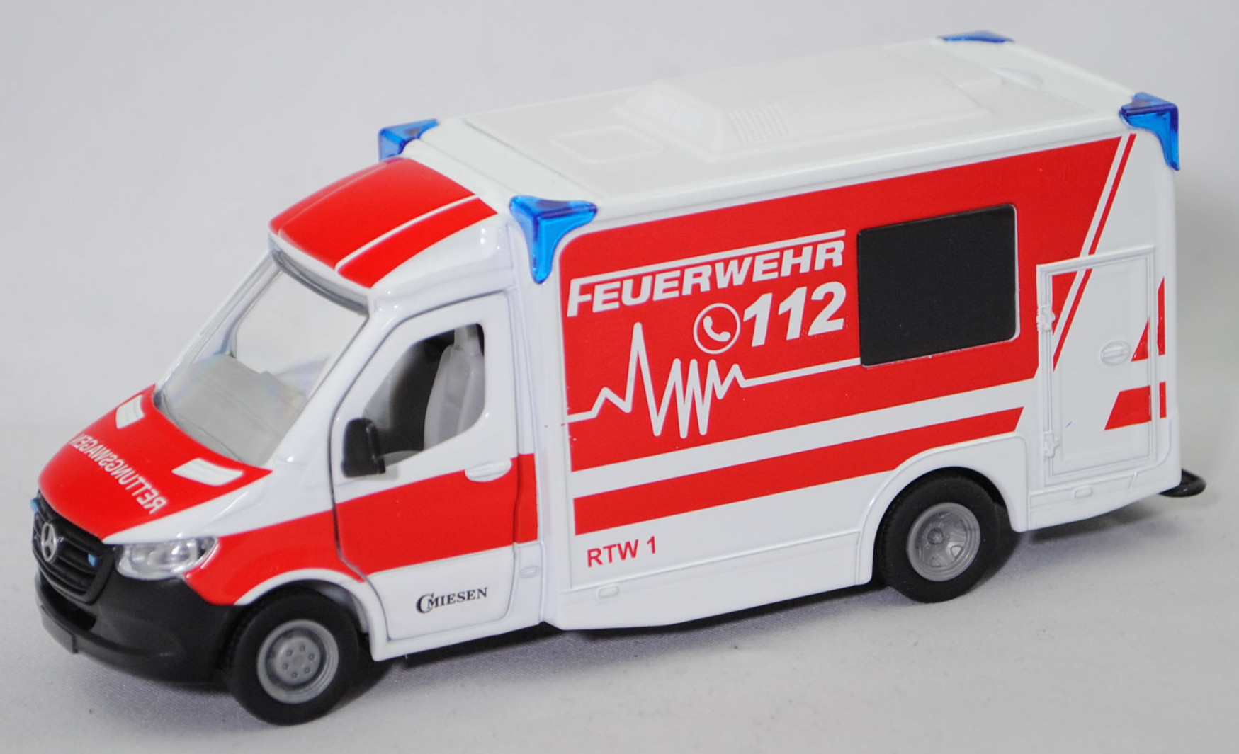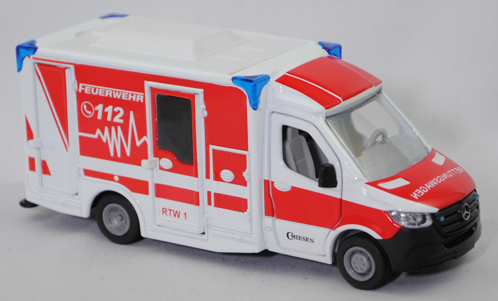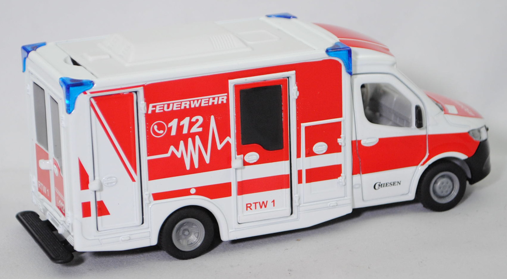 00002 MIESEN Rettungswagen auf Mercedes-Benz Sprinter III 519 CDI Fahrgestell, weiß, FEUERWEHR / C 112, mit Hecktürhalterungen als Türanschlag, SIKU SUPER 1:50, L17mpK