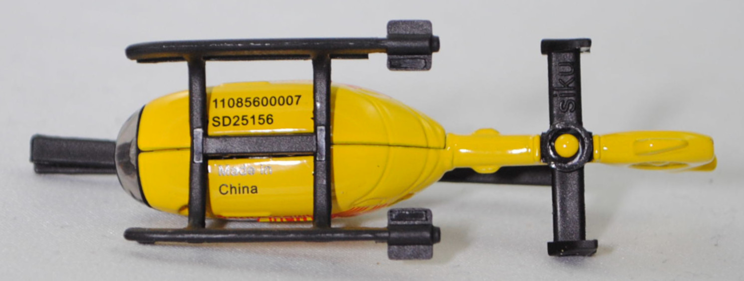 00002 Rettungshubschrauber Eurocopter EC 135 T1 (1. Generation, Baureihe EC 135, Typ leichter zweimotoriger Mehrzweckhubschrauber, T = Triebwerk von Turboméca-Arrius, hier als Rettungshubschrauber (RTH) / Intensivtransporthubschrauber (ITH), Jungfernflug am 15. Februar 1994 in Ottobrunn, Musterzulassung in Deutschland am 16. Juni 1996, Besatzung: 2 Personen (Pilot und Copilot), Passagiere: 1 Krankentrage und 3 Sitzplätze für Arzt und Sanitäter, Leergewicht 1482 kg, Nutzlast 1130 kg (1996-1998) bzw. 1265 kg (1998-2002), Höchstabflugmasse MTOW (maximum take off weight) 2630 kg (1996-1998) bzw. 2720 kg (1998-2002), Triebwerk: 2 Stück Turboméca-Arrius Typ 2B1 (Wellenturbine) mit je 750 PS (maximale Dauerleistung), Hauptrotordurchmesser 10200 mm, Durchmesser Fenestron (umschlossener Heckrotor) 1000 mm, Kabinenlänge ca. 3500 mm, Länge Rumpf bis Kabinenrückseite 5870 mm, Rumpflänge 10200 mm, Länge über alles 12160 mm, Auslieferung ab 31. Juli 1996, Modell 1996-2002), signalgelb, Druck AMBULANCE in verkehrsrot und Kreuz mit in Modellfarbe durchschimmerndem Äskulap Stab in verkehrsrot auf den Seiten, Rotoren und Heckleitwerk schwarz, Druck Chargennummer auf dem Rumpf, Kufen schwarz, SIKU SUPER, ca. 1:144, P29f (EAN 4006874008568)