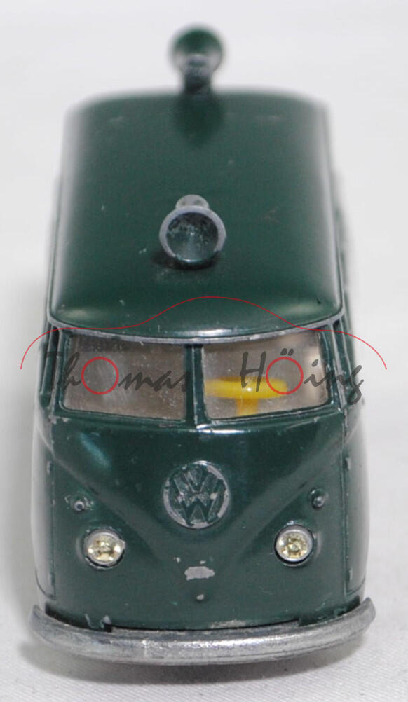 00002 VW Transporter Kombi 1200 (Typ 2 T1, Modell 1961-1962) Polizei-Lautsprecherwagen, grün, innen weiß, Lenkrad gelb, Hohlnieten, R1, SIKU, 1:61, m-