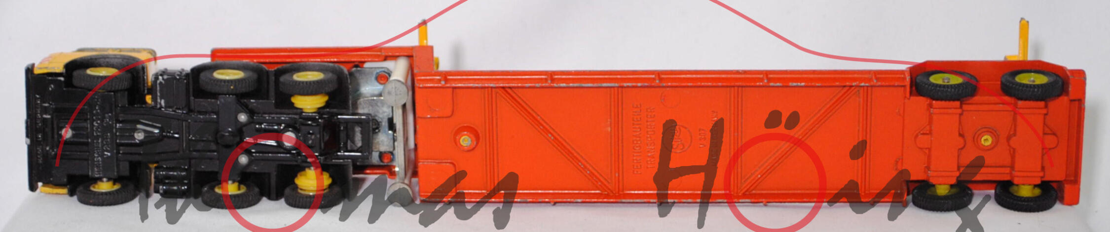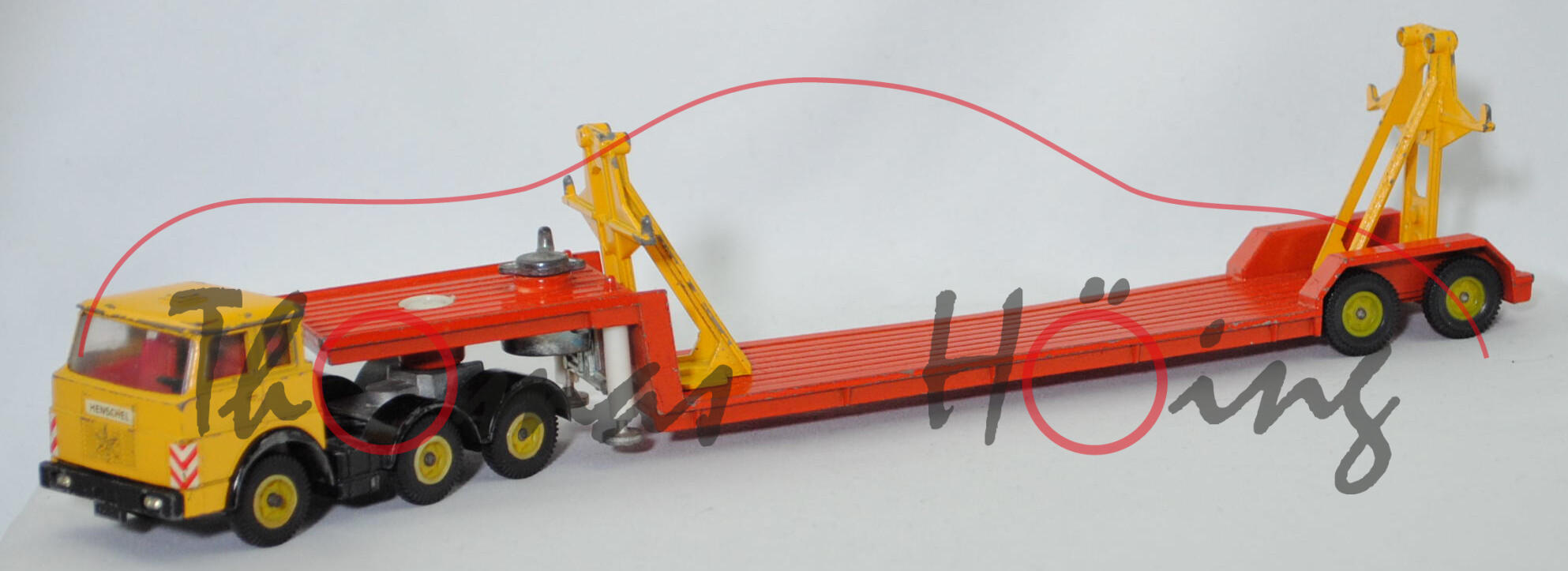 00002a Henschel F 201 S-2A mSk (Modell 1967-1969) Sattelzug ohne Ladegut, signalgelb/reinorange, Hydraulikstempel weiß, SIKU-SUPER-ZINKGUSS 1:60 (V-SERIE), 1:58, sc