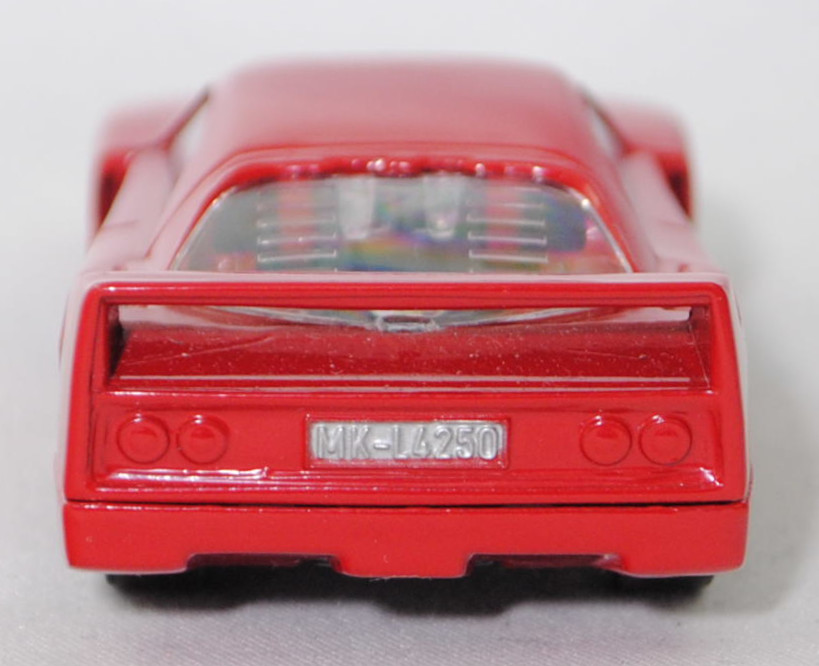 00004 Ferrari F40 (Typ F120, Modell 1987-1992), karminrot, Nummernschild hinten silber, Chassis schwarz, Hong, mit CE-Zeichen, B6, SIKU SUPER, 1:56, m
