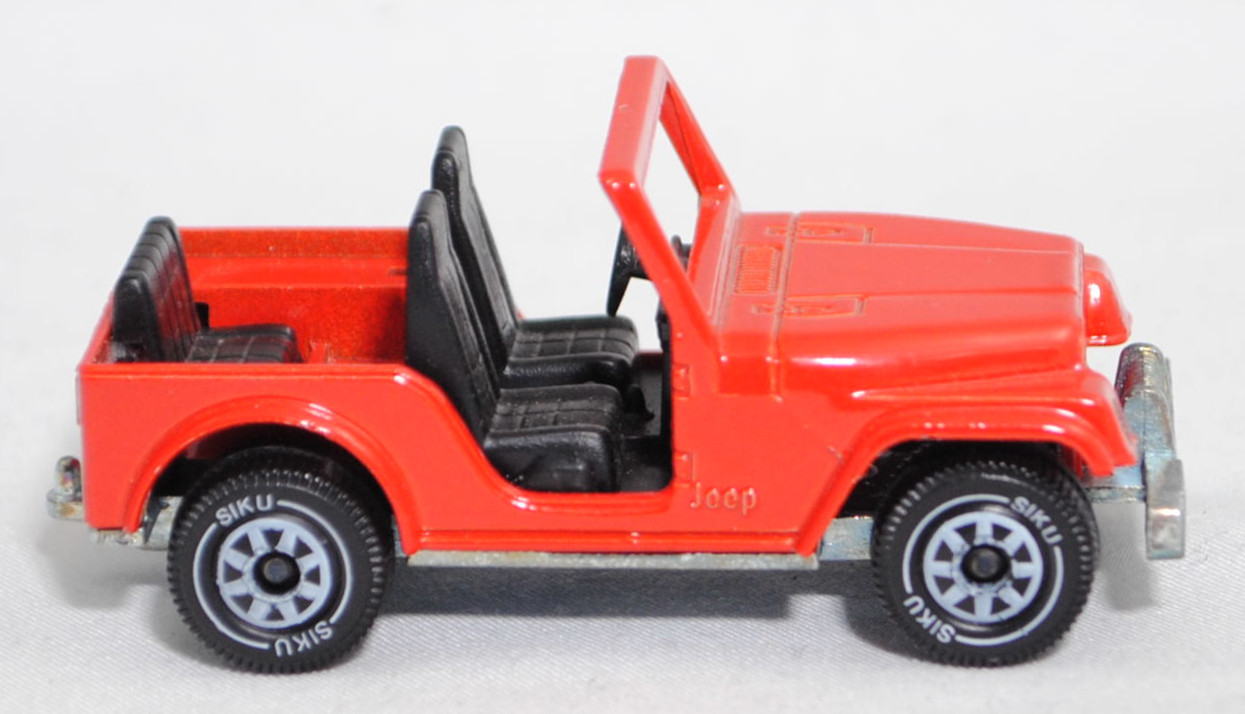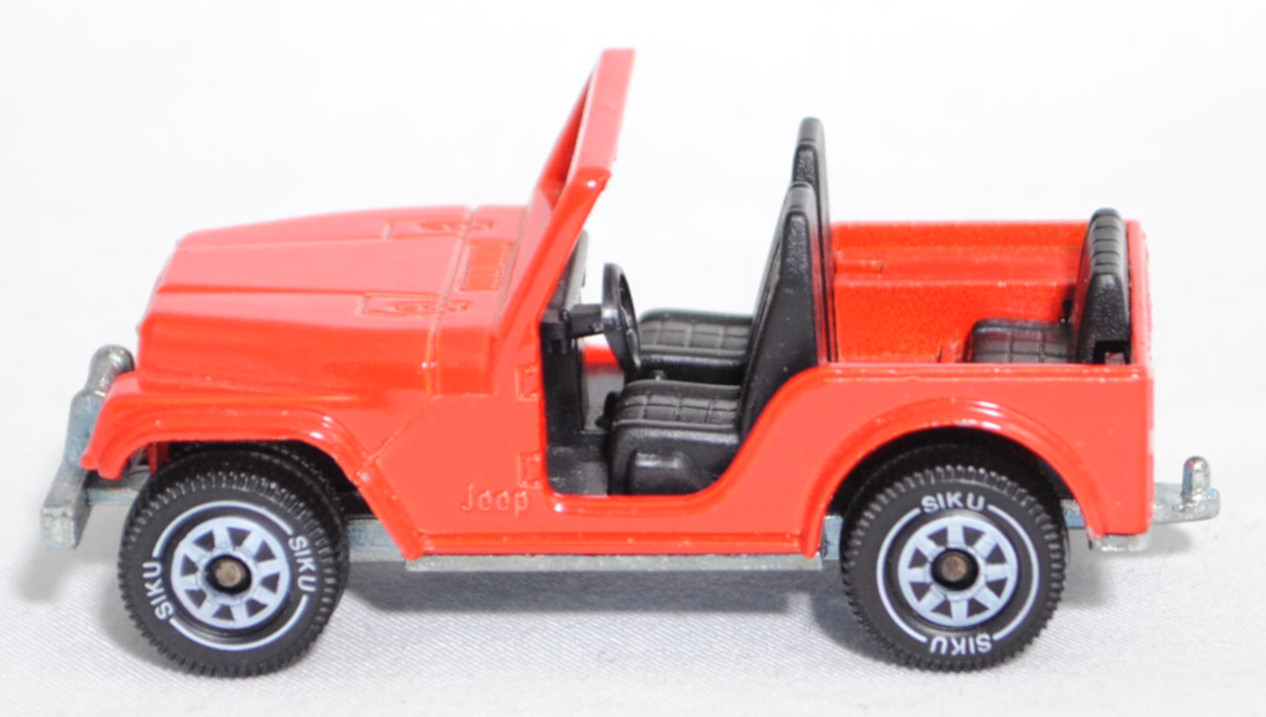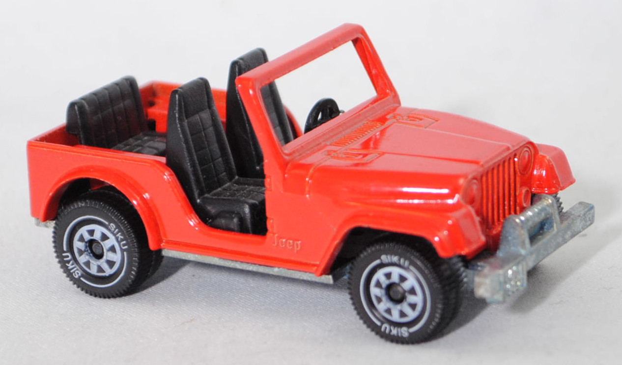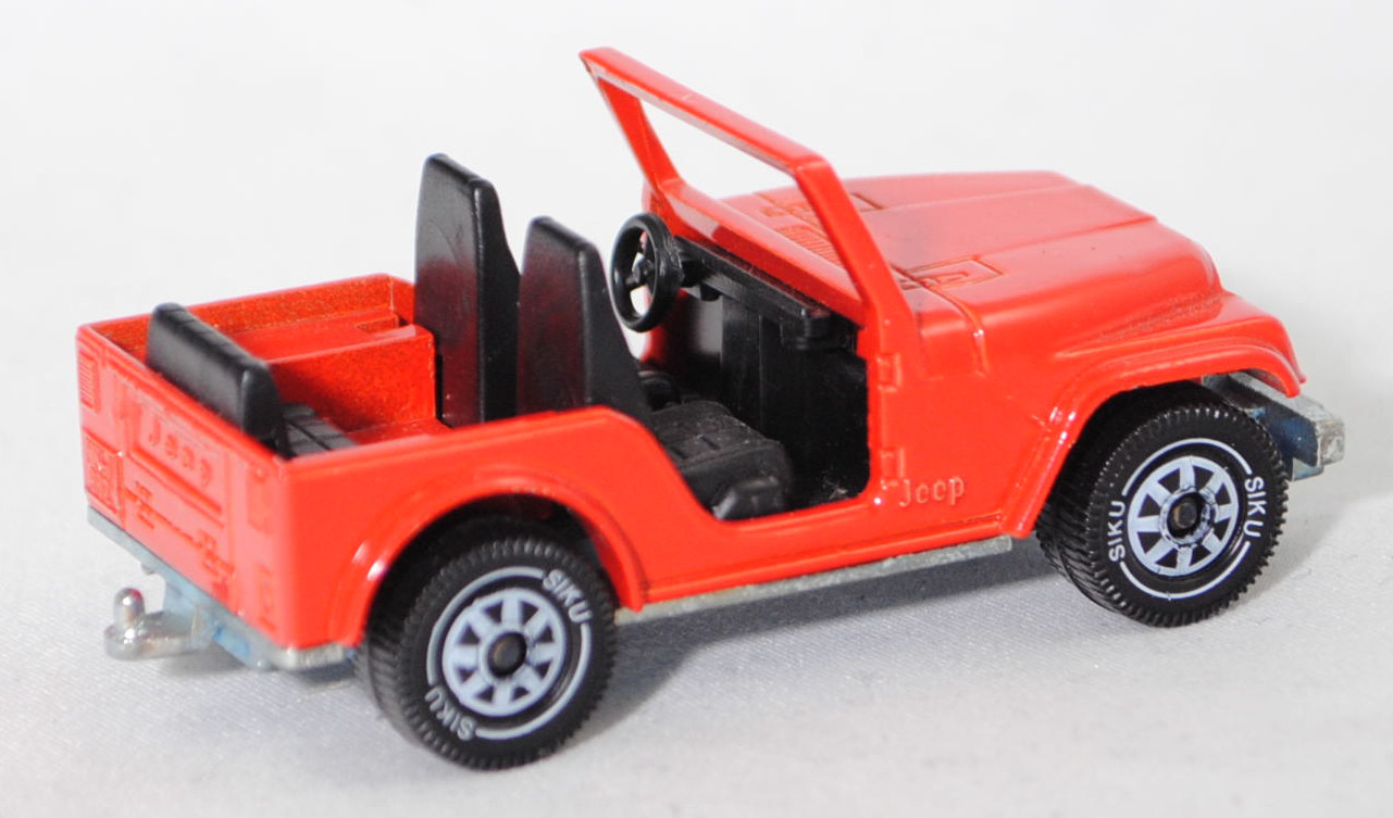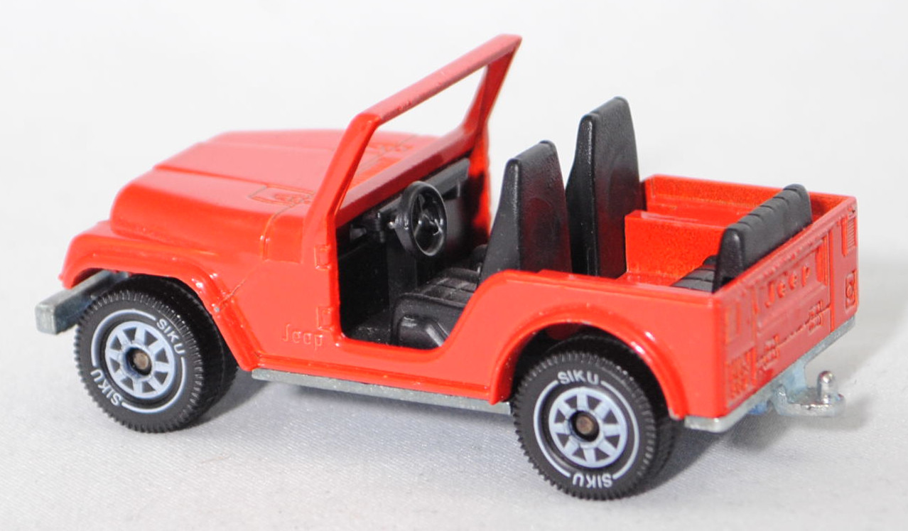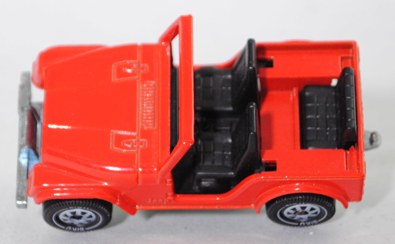 00004 Jeep CJ-5 2.5L (5. Generation, Modell 1979-1983) ohne Fiberglas Hardtop (von Siku als Jeep CJ-7 bezeichnet), verkehrsrot, innen schwarz, ohne CE-Zeichen, B5, SIKU SUPER, 1:55, m (Hardtop weg)