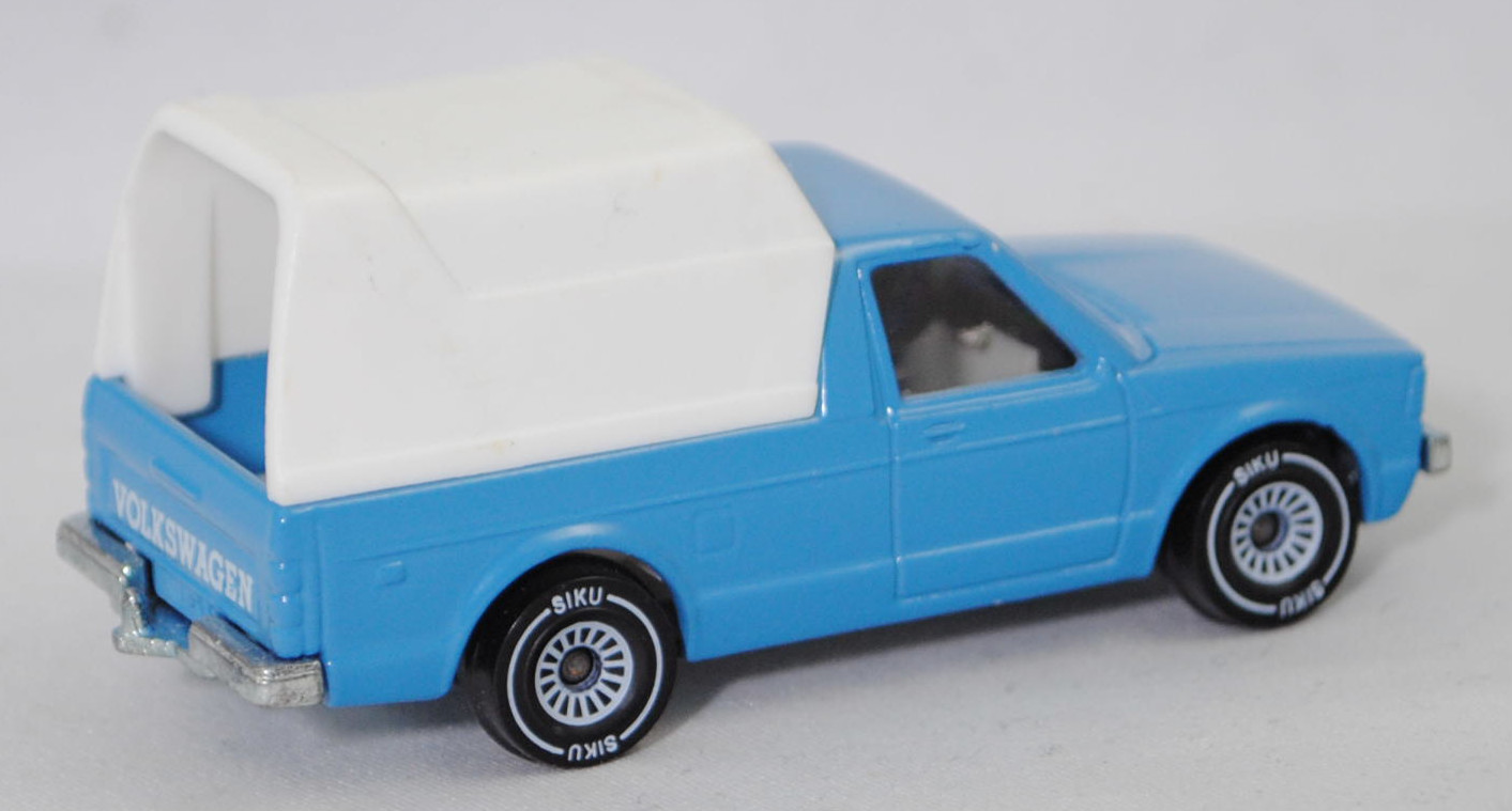 00006 VW Pickup Truck LX (vgl. VW Caddy I) (14D, Typ 147, Mod. 81-83) mit Kastenaufbau, lichtblau, VOLKSWAGEN in weiß auf Heckklappe, Bpr. ohne CE-Zeichen, SIKU, 1:58, m