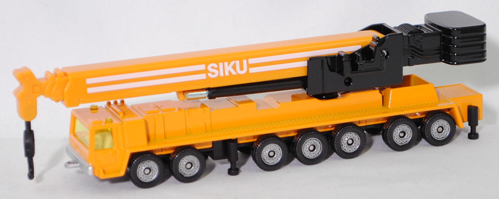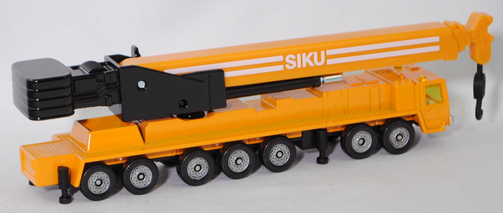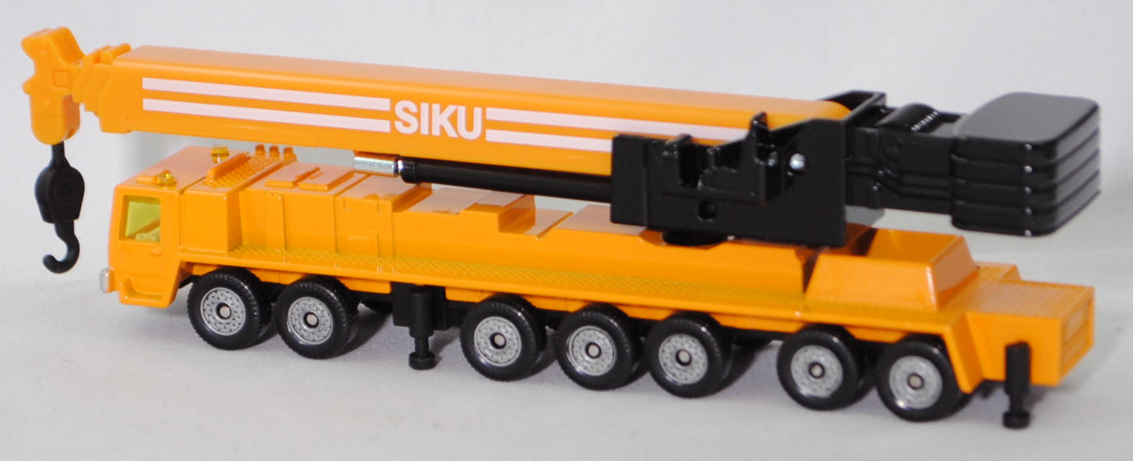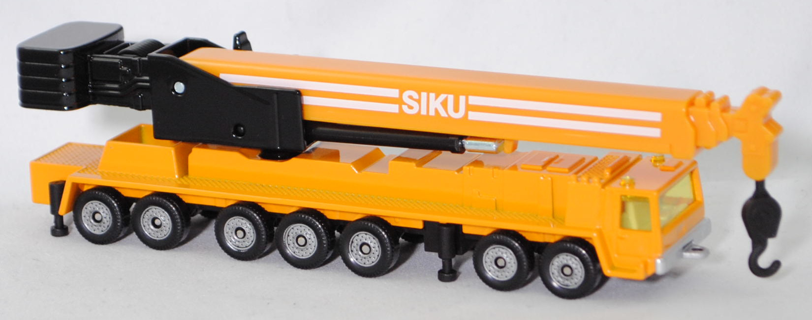 00008 MEGA LIFTER LIEBHERR LTM 1400 Mobilkran mit Teleskopausleger, maisgelb/schwarz, innen reinweiß, Sitze reinweiß, Lenkrad integriert, Druck SIKU (4,5 mm hoch) und Streifen in reinweiß auf den Seiten des Auslegers, Hydraulik schwarz, Kranhaken schwarz, Stützen schwarz, Bpr. siku statt Artikelnummer, Bpr. CE-Zeichen hinten, Radkasten rechts mit Adresse, Druck Chargennummer auf dem Chassis, C36, SIKU SUPER, ca. 1:117, P29f (EAN 4006874016235)