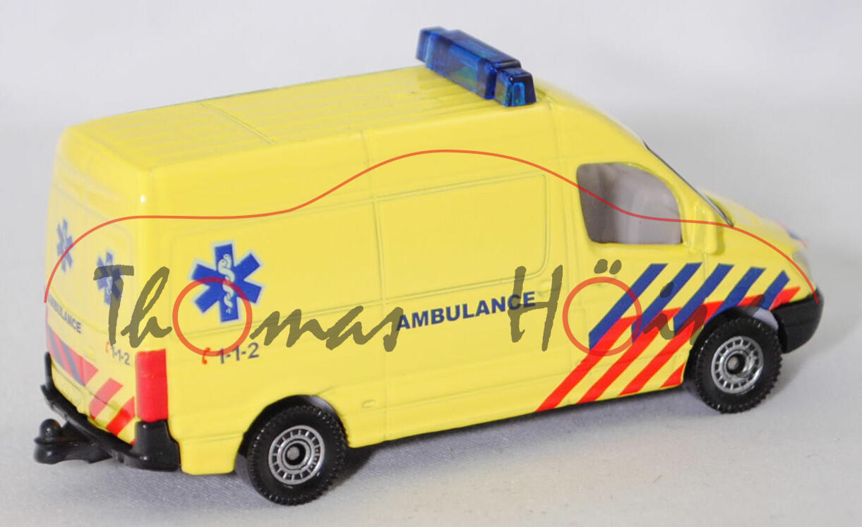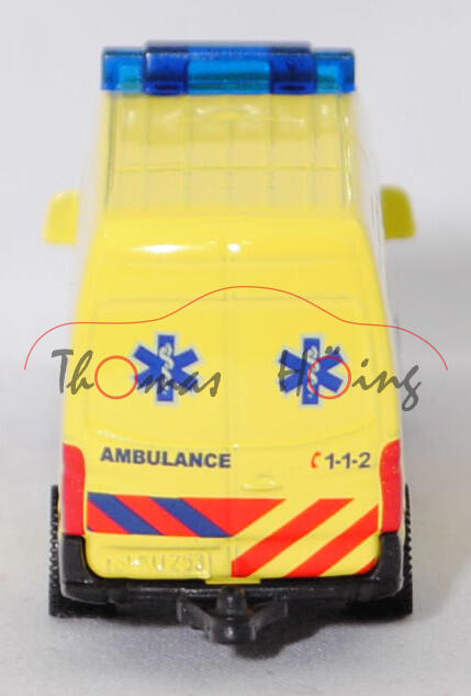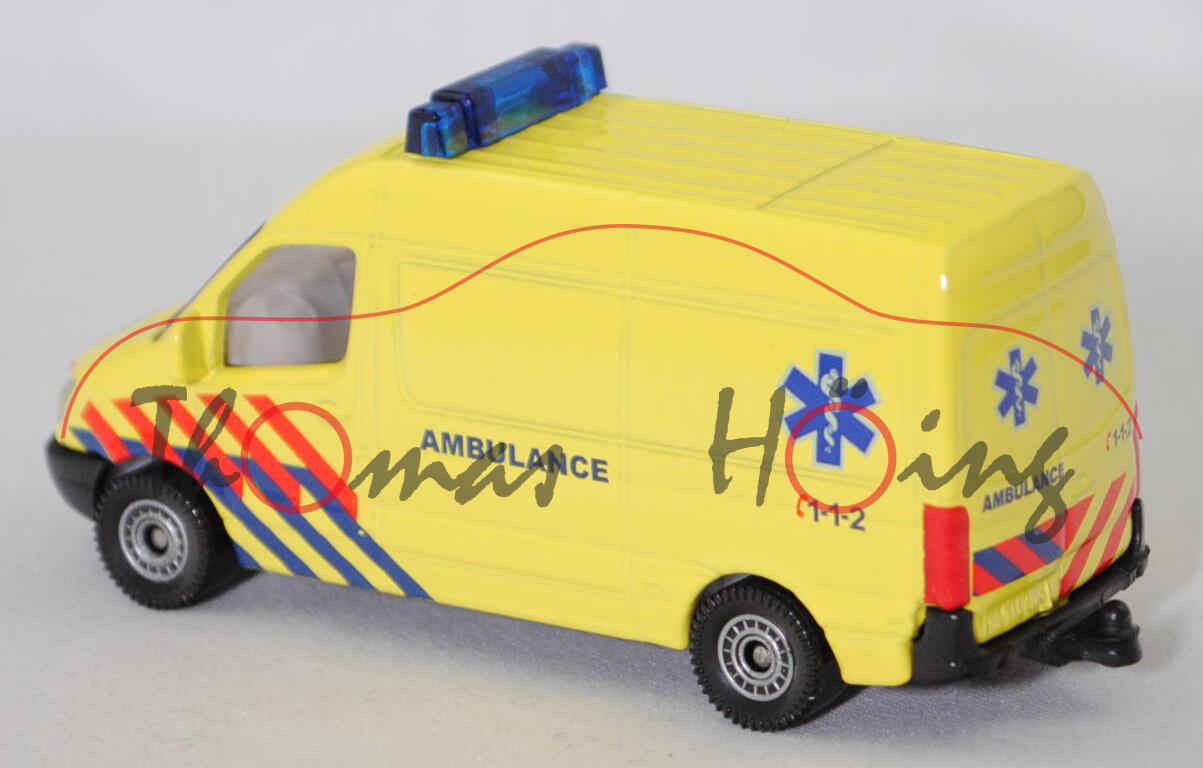 Produktinformationen "00305 NL5 Mercedes-Benz Sprinter II (NCV 3,W 906, Modell 2006-2009) Kastenwagen Krankenwagen, leuchtgelb, AMBULANCE C 1-1-2, C80, SIKU SUPER, 1:77, P29f (DUTCH SPECIAL)"