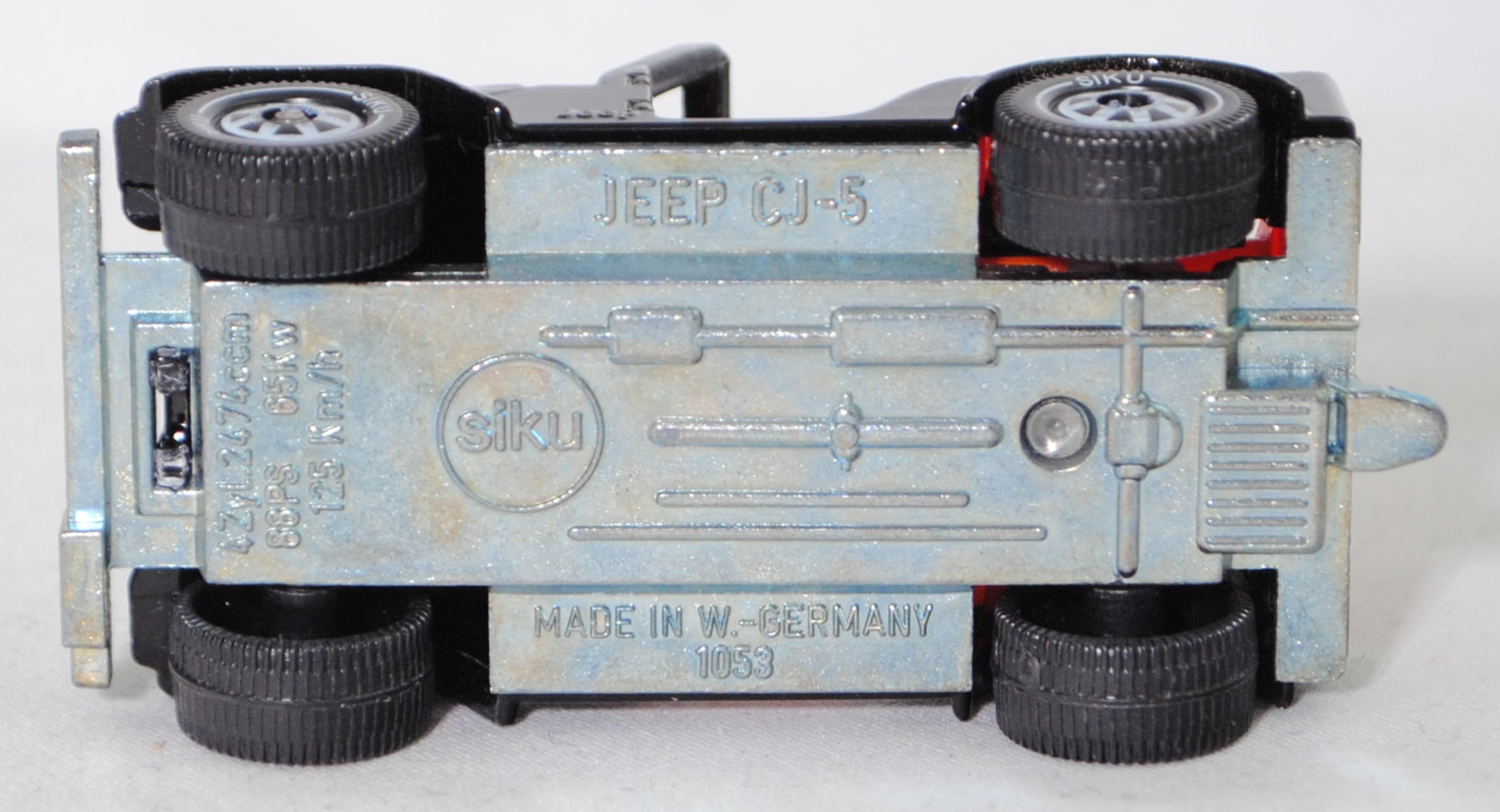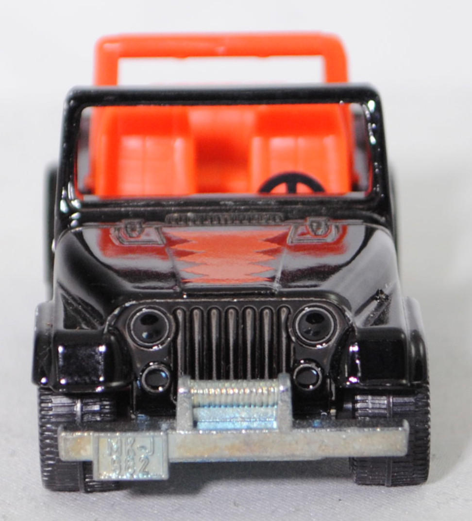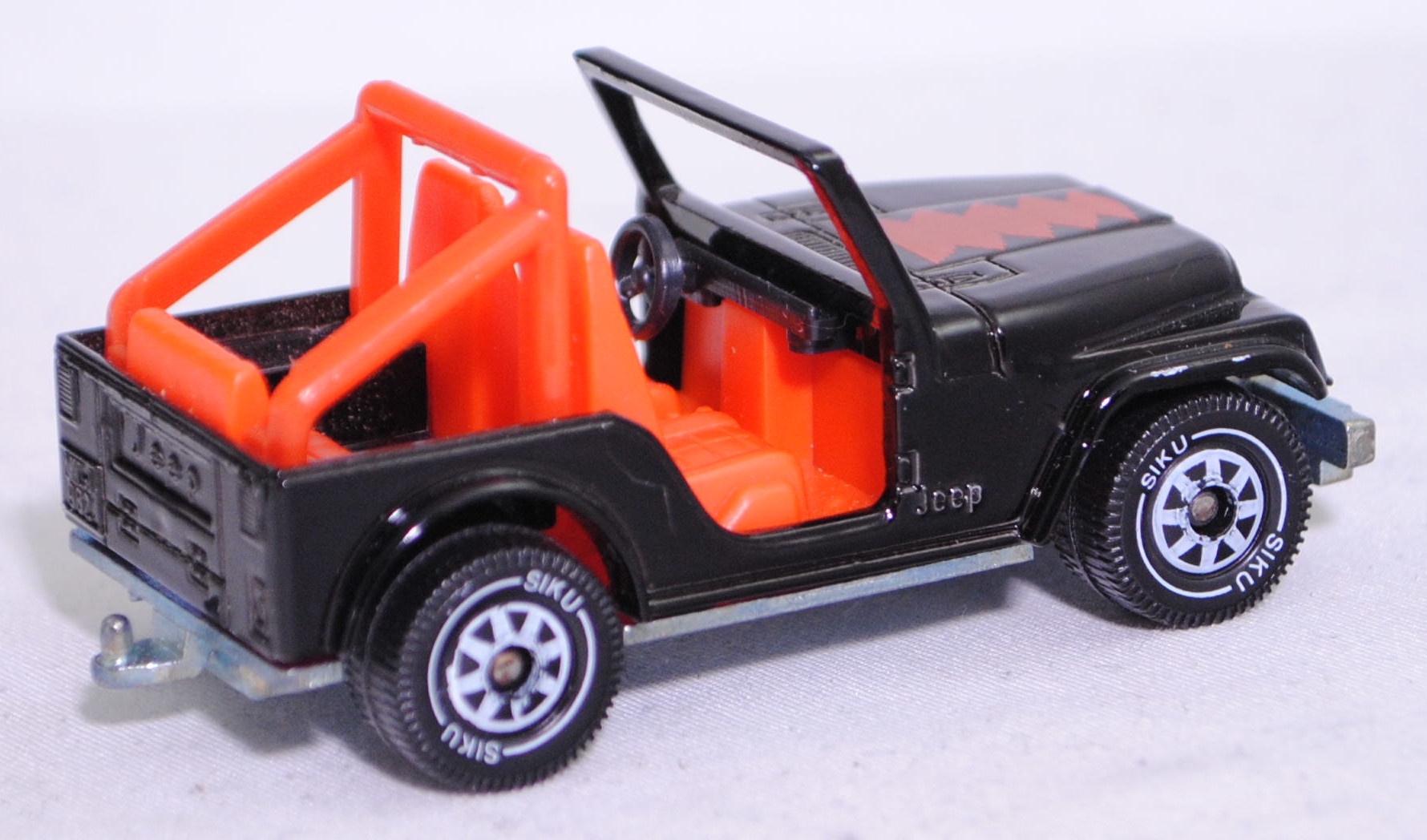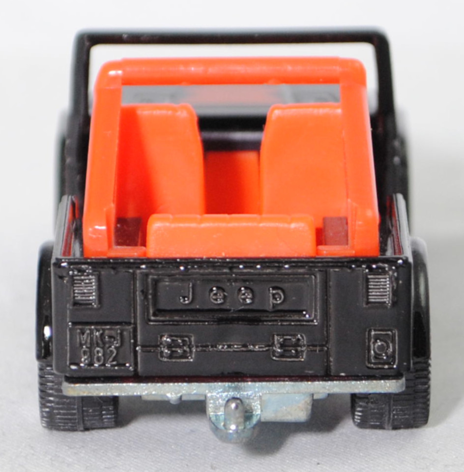 00601 GB Jeep CJ-5 2.5L (Modell 1979-1983), schwarz, Überrollbügel rotorange, Druck Emblem in rotorange (heller) auf der Motorhaube, B5, SIKU SUPER, 1:55, m