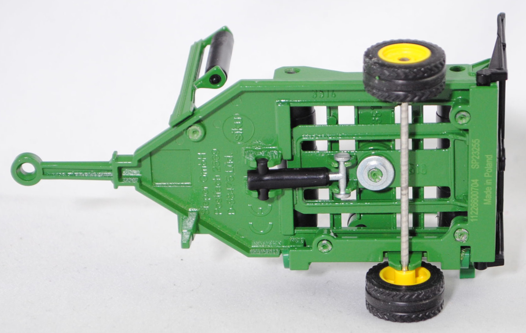 00703 IE Rundballenwickler, Wickeltisch und Ballen-Ablage sowie Chassis smaragdgrün, Walzen und Heckklappe schwarz, Bpr. mit Adresse, Druck Chargennummer auf dem Chassis, Modell genietet, LKW41 zinkgelb, Zubehör: 2 Stück Rundballen schwarz, SIKU FARMER, 1:32, L16nmp (Schachtel mit Bild auf der Schachteloberseite) (Limited Edition / IRELAND SPECIAL) (EAN 4006874722662)