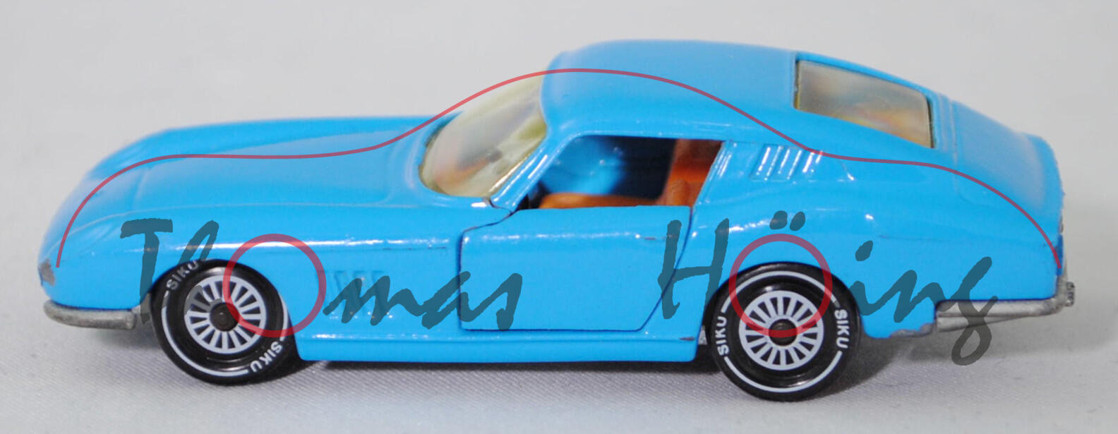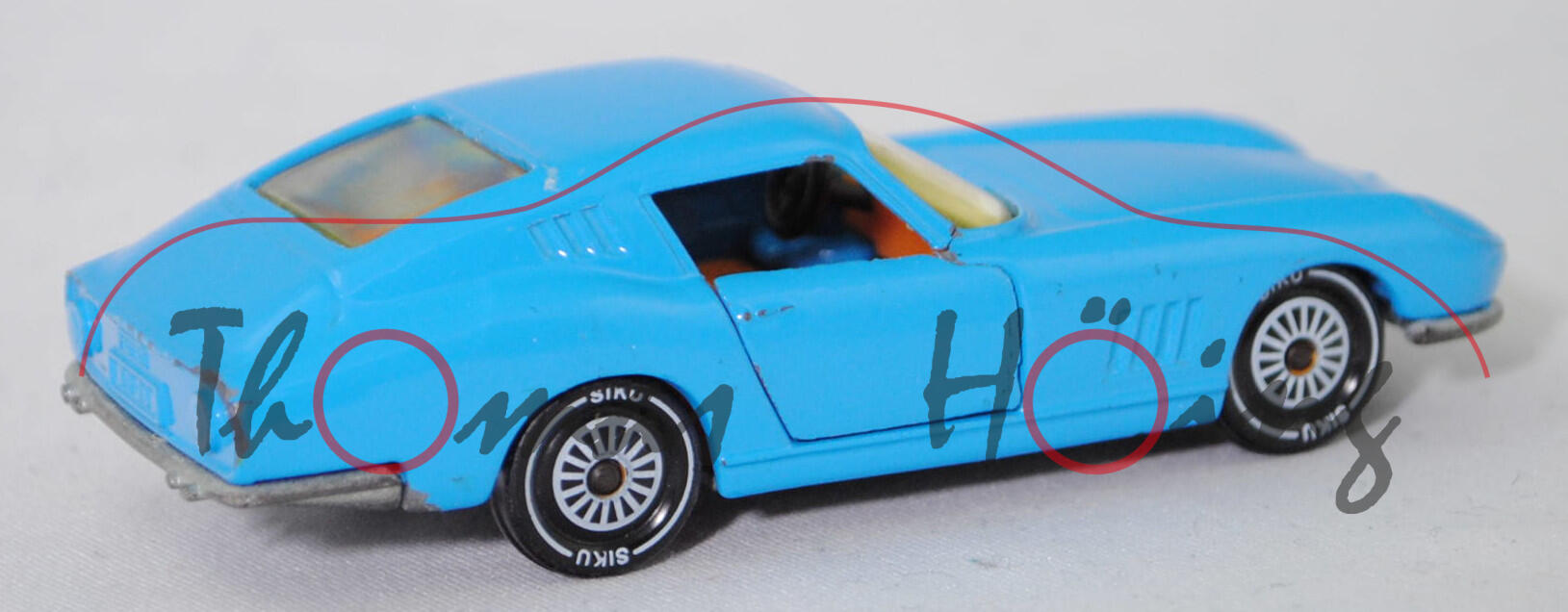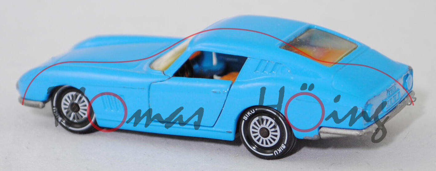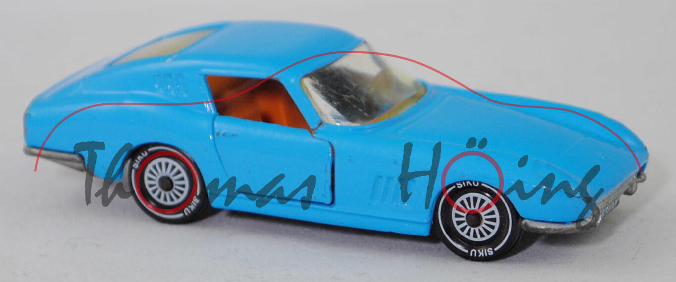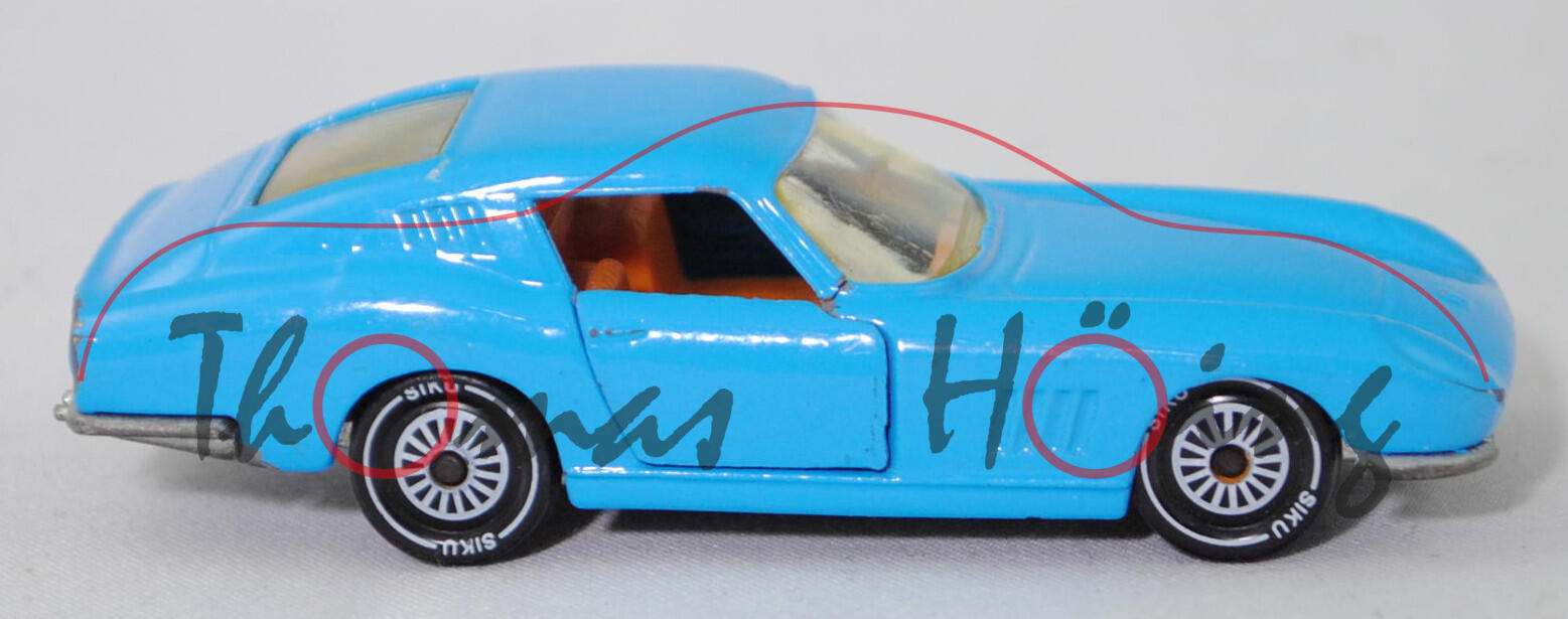 06401 HU Ferrari Berlinetta 275 GTB (Tipo 563, 2. Serie, Long Nose, Modell 1965-1966), lichtblau, innen hell-rotorange, SIKU Ungarn / Metchy, 1:56, m- (A-Säulen gebrochen)