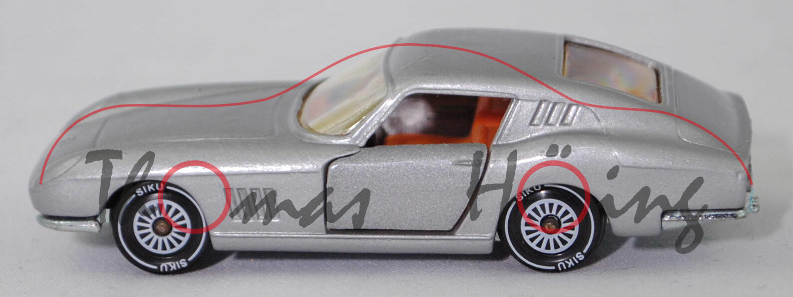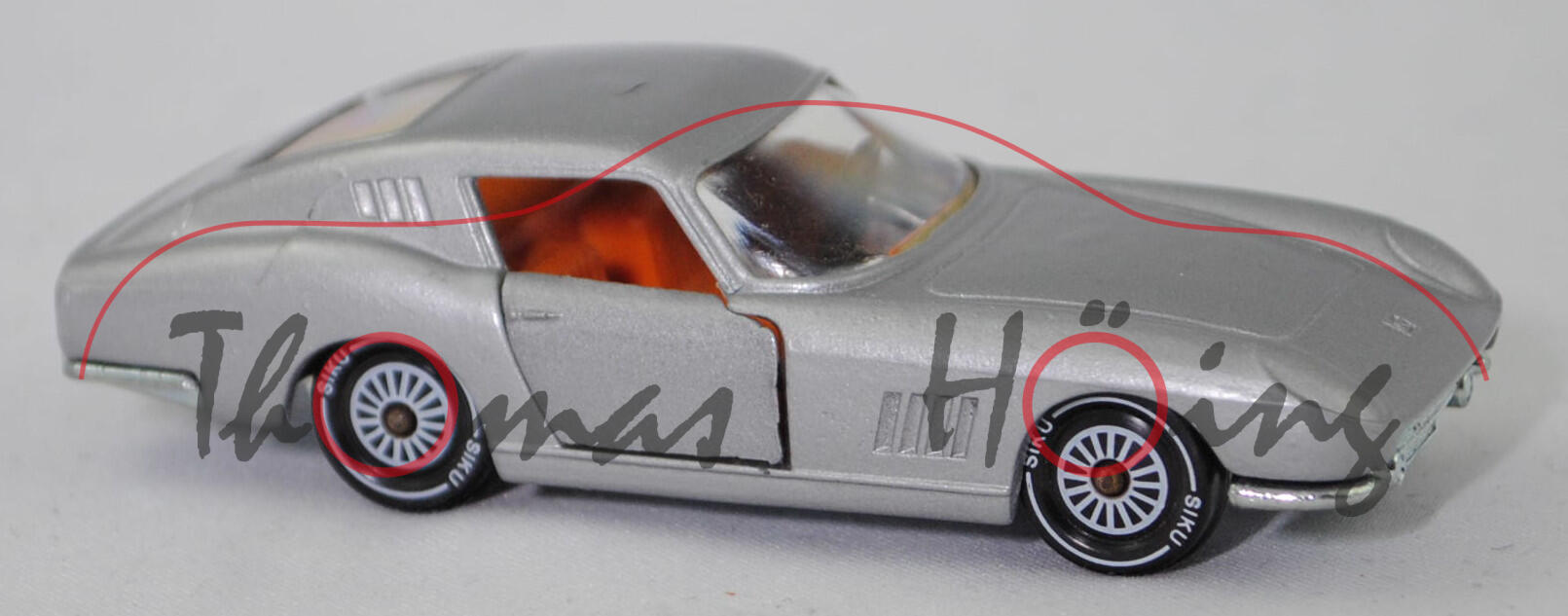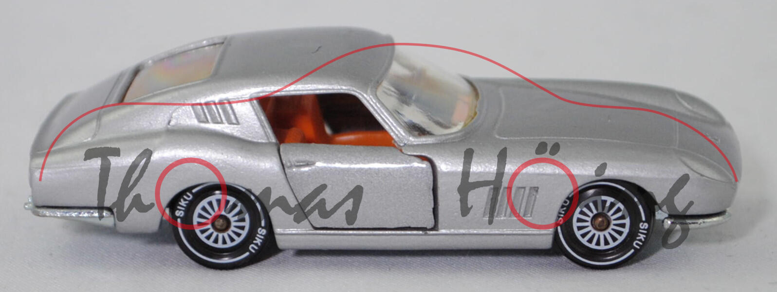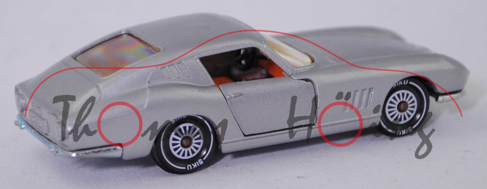 06402 HU Ferrari Berlinetta 275 GTB (Tipo 563, 2. Serie, Long Nose, Modell 1965-1966), silbergraumetallic, innen hell-rotorange, SIKU Ungarn / Metchy, 1:56, m- (Lackoberfläche rauh)
