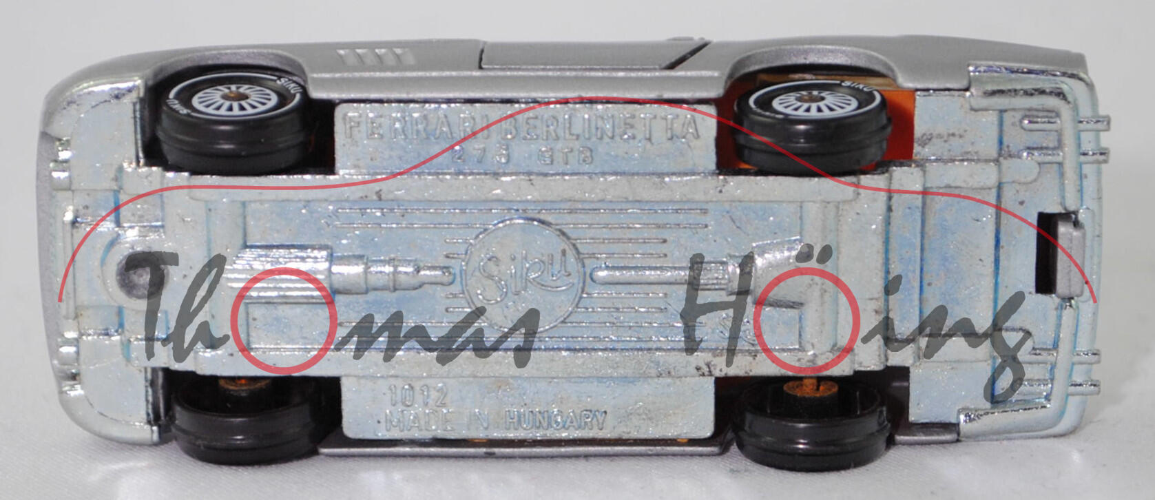 Produktinformationen "06402 HU Ferrari Berlinetta 275 GTB (Tipo 563, 2. Serie, Long Nose, Modell 1965-1966), silbergraumetallic, innen hell-rotorange, SIKU Ungarn / Metchy, 1:56, m- (Lackoberfläche rauh)"