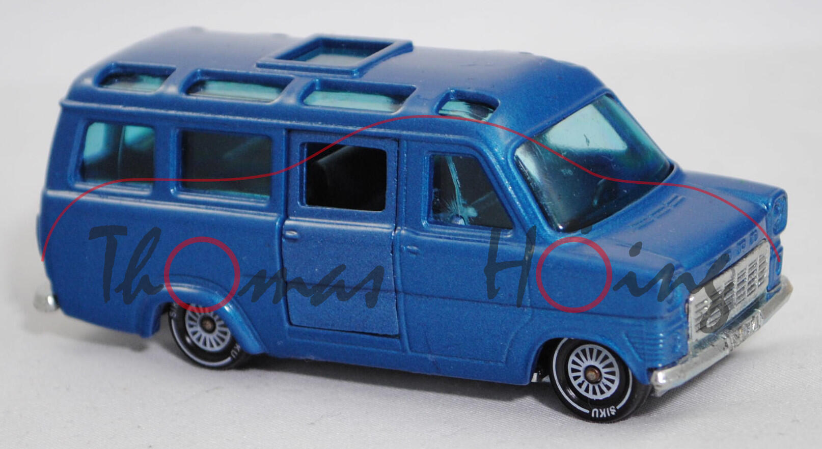 Produktinformationen "06403 HU Ford Transit Panorama-Bus FT 130 (Transit '71, Modell 1971-1975) Schulbus, grünblaumetallic, Chassis chrom, SIKU Ungarn / Metchy, 1:60, m (HUNGARY SPECIAL)"