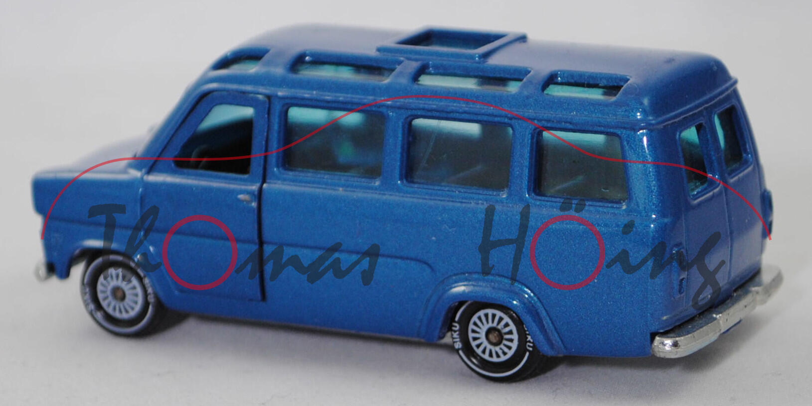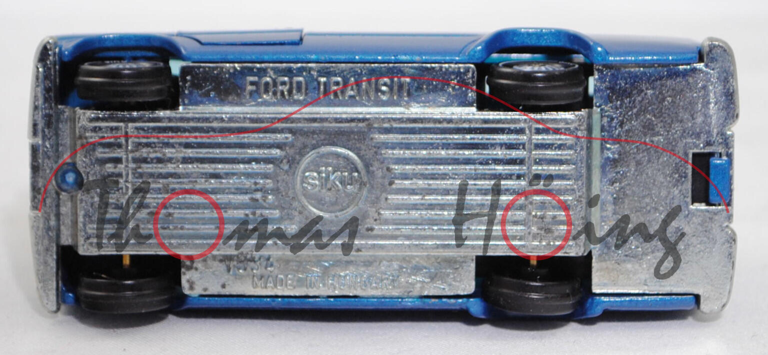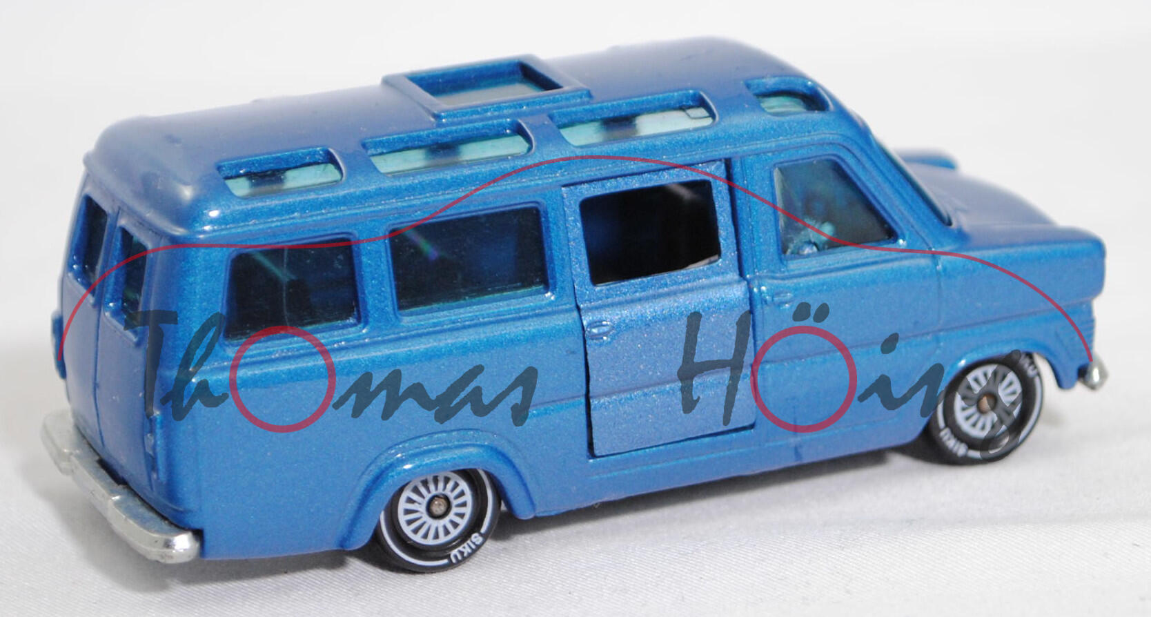 06403 HU Ford Transit Panorama-Bus FT 130 (Transit '71, Modell 1971-1975) Schulbus, grünblaumetallic, Chassis chrom, SIKU Ungarn / Metchy, 1:60, m (HUNGARY SPECIAL)