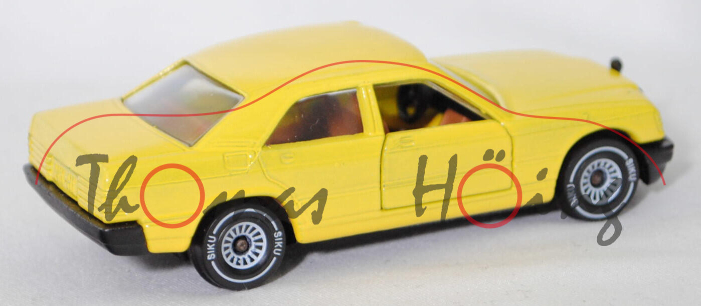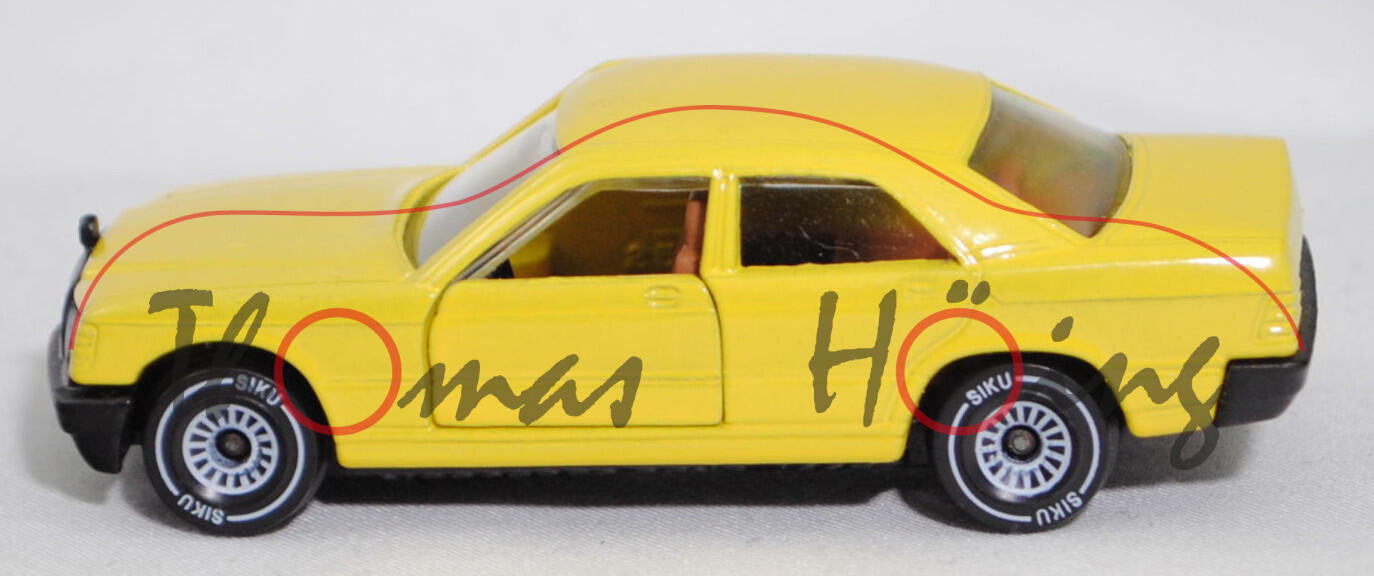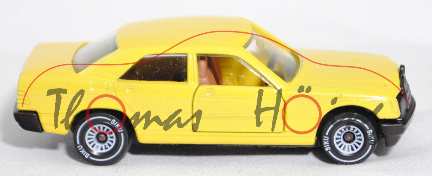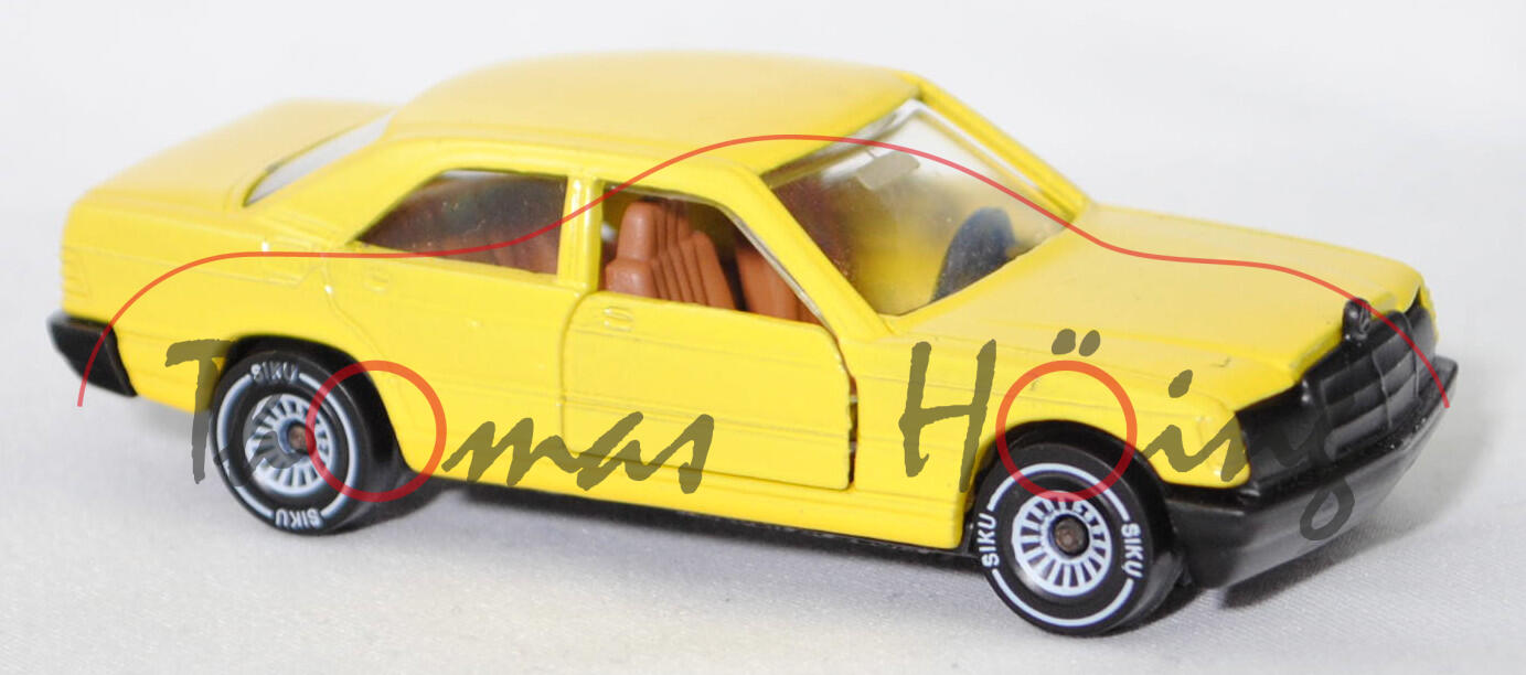 06407 HU Mercedes-Benz 190 E (W 201, Vor-MoPf, Modell 1982-1988), zinkgelb, innen hell-ockerbraun, Chassis schwarz, SIKU Ungarn / Metchy, 1:55, m (Limited Edition)