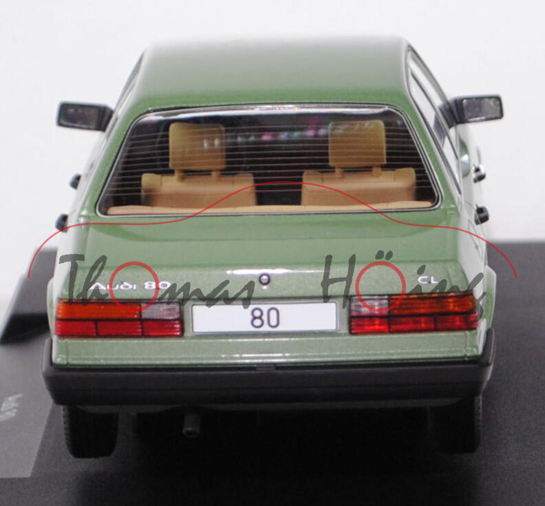 Audi 80 CL (2. Generation, B2, Typ 81, Vorfacelift (VFL), Modell 1981-1984), topasgrünmetallic (Verkaufskennzeichen Y3, Lacknummer LD6Y), MODELCAR GROUP, 1:18, mb (Limited Edition)