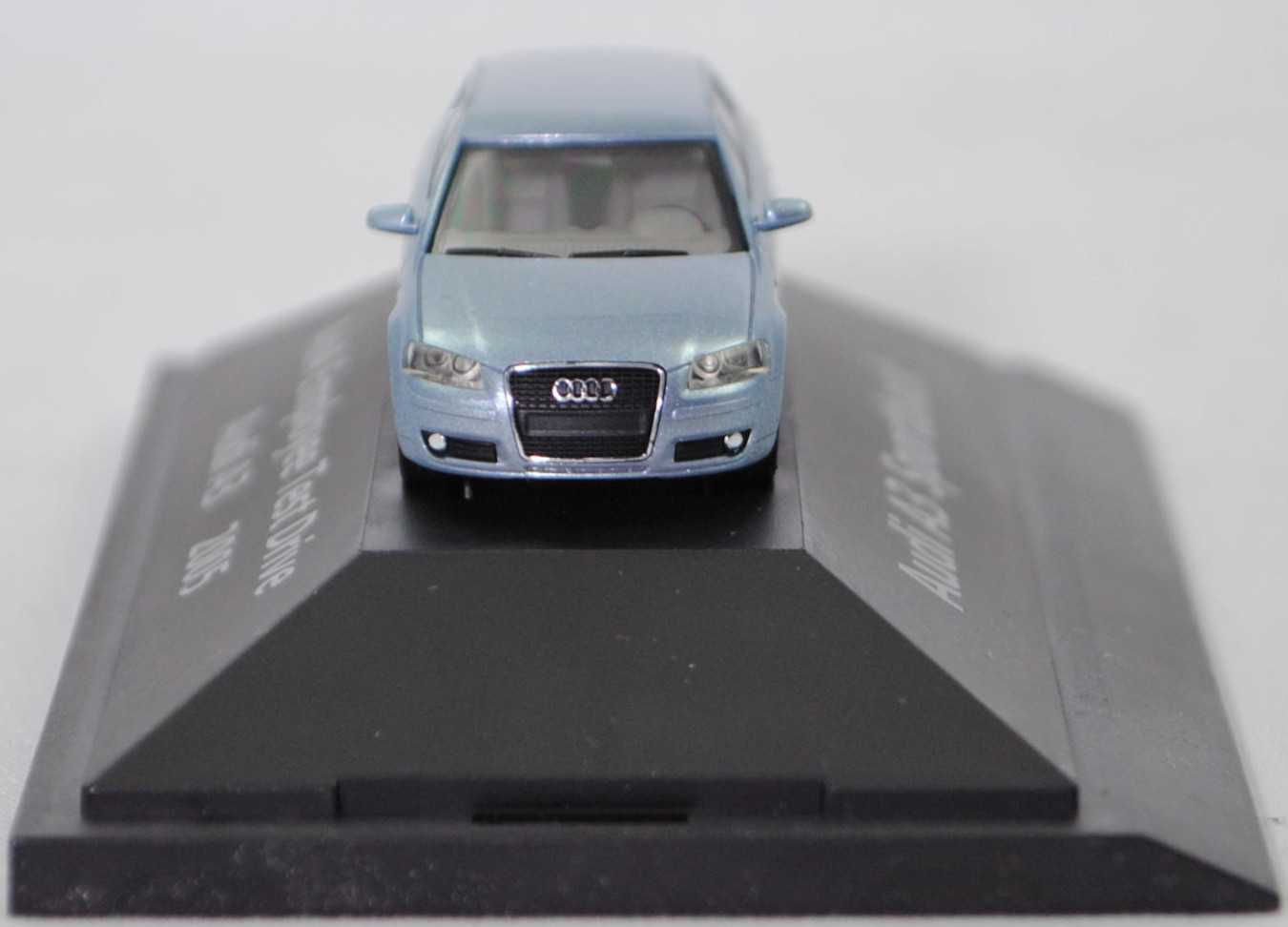 Audi A3 Sportback Ambition 3.2 quattro (2. Generation, 8PA facelift 1, Modell 2004-2008), liquidblau metallic (LY5J), Herpa, 1:87, Werbebox (AoA Employee Test Drive / Audi A3 2005)