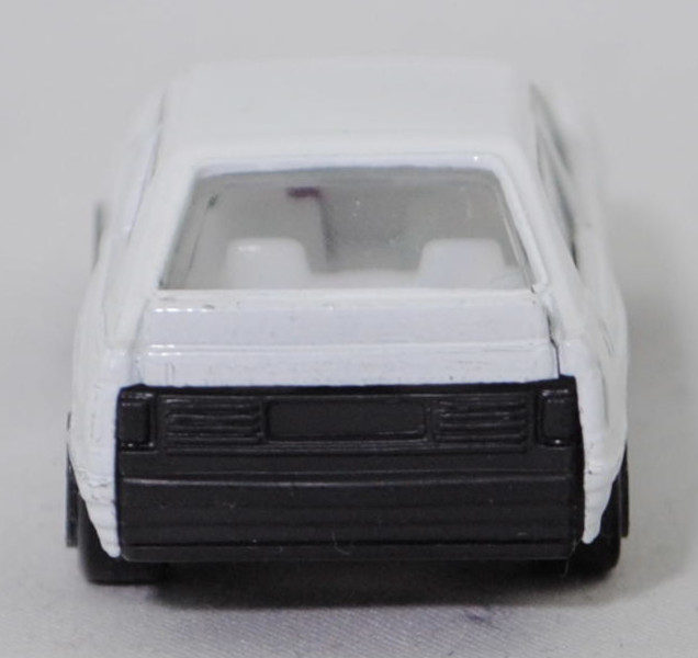 Audi quattro (1. Generation, Baureihe quattro, interne Baureihenbezeichnung B2, Typ 85Q, zweitüriger Sportwagen als Coupé mit 5 Sitzplätzen, VFL (Vorfacelift), versenkte Doppel-Halogen-Rechteckscheinwerfer mit blanken Rechteckausschnitten, gerade stehender Kühlergrill, Heckleuchten orange/rot, Heckleuchtenband rot mit integrierter Nebelschlussleuchte, schwarzer Heckspoiler, Ausstattungslinie quattro: versenkte Doppel-Halogen-Rechteckscheinwerfer mit blanken Rechteckausschnitten + Scheinwerfer-Reinigungsanlage + großer integrierter Frontspoiler + blanke Zierleiste ober- und unterhalb des Kühlergrills + in Front- und Heckschürze integrierter kunststoffummantelter Stoßfänger + seitliche Zusatzblinkleuchte + abblendbarer Sicherheitsinnenspiegel + klapp- und schwenkbare Sonnenblenden mit beleuchtetem Make-up-Spiegel auf der Beifahrerseite + abschließbarer Ablagekasten auf der Beifahrerseite mit Beleuchtung + Zweistufenschaltung und Tipp-Wisch-Kontakt für Scheibenwischer + elektrische Scheibenwaschanlage + Mittelkonsole + Schalthebelknopf und -stulpe in Leder + Türablagekästen + lederbezogenes 4-Speichen-Sportlenkrad + Sportsitze vorne + Liegesitzeinrichtung für Fahrer und Beifahrer + verstellbare Rahmenkopfstützen für Vordersitze + ausgeformte Rücksitzbank mit im Kopfraumbereich angeformter Rücksitzlehne + Stoffsitzbezüge in Quattro-Velours + schwarze Tür- und Seitenfenster-Rahmen + doppelter umlaufender Dekostreifen + Heckspoiler + zwei Rückfahrleuchten + Nebelschlußleuchte + Zierblende zwischen den Heckleuchten + rotes Leuchtband mit Schriftzug COUPÉ zwischen den Heckleuchten + Edelstahl-Auspuffanlage mit Doppelendrohr + Leichtmetallräder, vollsynchronisiertes 5-Gang-Schaltgetriebe als Mittelschaltung, permanenter Allradantrieb quattro®, Motor: Audi Typ VW EA828 wassergekühlter Fünfzylinder-Reihen-Viertakt-Otto mit KKK (Kühnle, Kopp & Kausch AG Frankenthal) K26 Abgas-Turbolader und mechanischer Einspritzanlage sowie eine obenliegende Nockenwelle (OHC = Overhead Camshaft) und 2 Ventile pro Zylinder sowie Ladeluftkühler und 2144 cm³ sowie 200 PS, Motorkennbuchstabe WR, Radstand 2524 mm, Länge 4404 mm, Modell 1980-1982), alpinweiß (Verkaufskennzeichen P1, Farbcode L90E), innen reinweiß, Sitze reinweiß, Lenkrad reinweiß, Bpr. MADE IN CHINA, Chassis schwarz, 5-Arm-Felgen in schwarz (Audi Leichtmetallräder im 16-Speichen-Design (Hersteller RONAL) Größe 6 J x 15 H2 ET 45 mit Lochkreis 5 x 112 (Teilenummer 437 601 025 C) und Nabendeckel / Radzierkappe (58 mm, Teilenummer 841 601 165) sowie Reifen 205/60 VR 15), WELLY, 1:62, m- (Vitrinenmodell, minimale Lackfehler) (EAN 5906168336300)