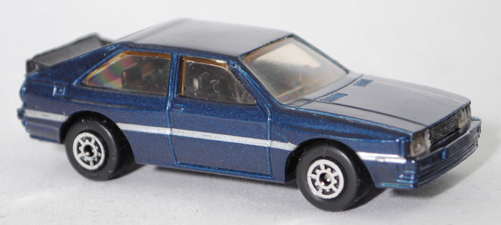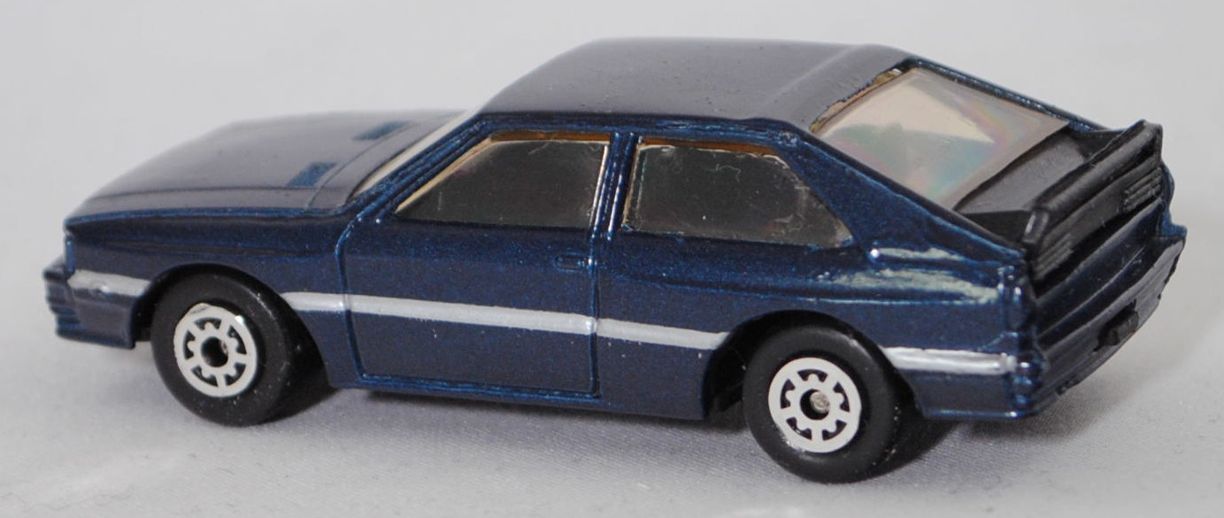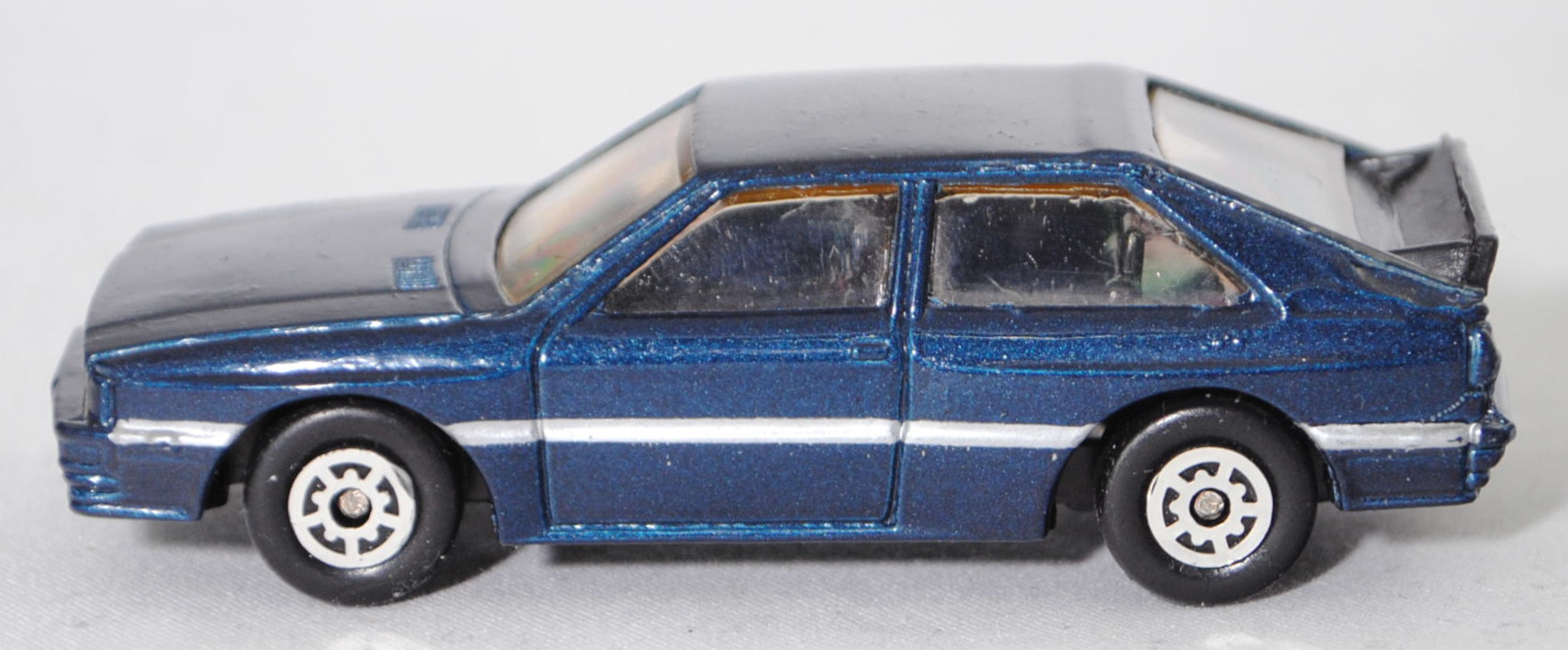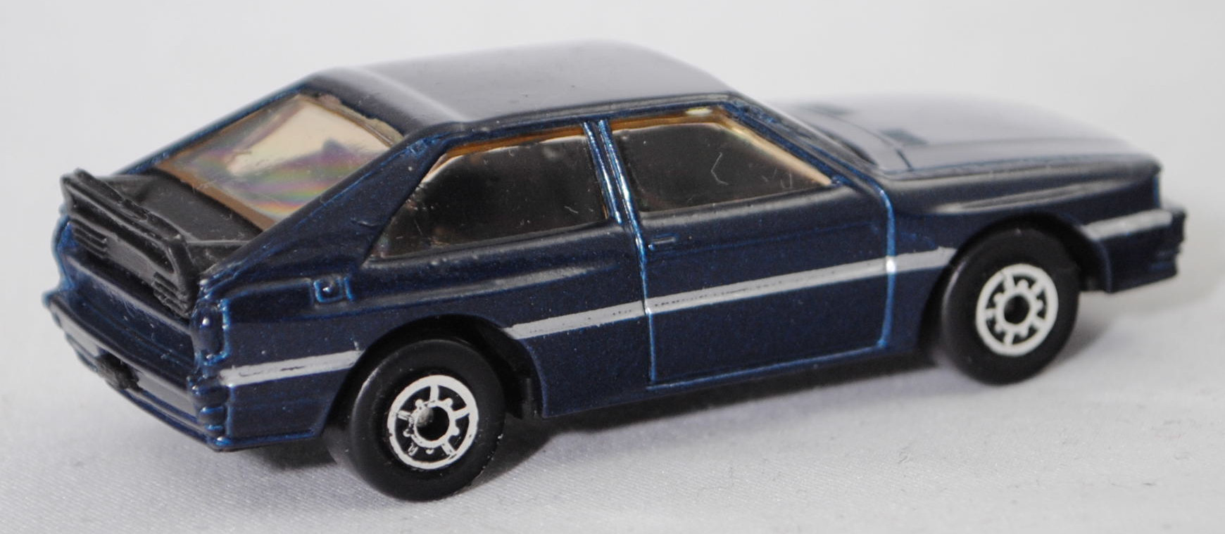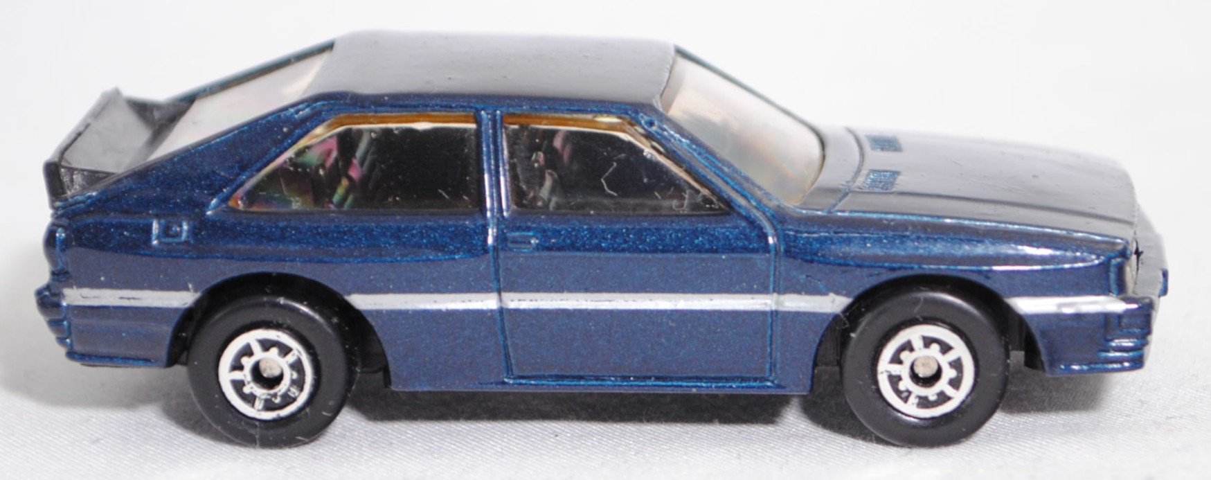 Audi quattro (1. Generation, B2, Typ 85Q, VFL (Vorfacelift), Modell 1980-1982), stahlblaumetallic, Druck Streifen in silber auf den Seiten, EDOCAR®, 1:58, m