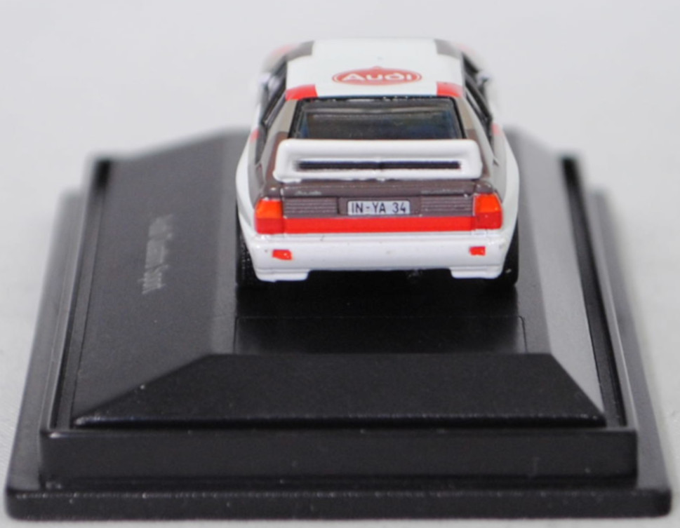Audi quattro A2 Gruppe B (B2 / R1, Mod. 83-84), weiß, 12. Rallye Köln-Ahrweiler 1983, Startnummer 0, Walter Röhrl / Christian Geistdörfer, Team: Audi Sport, IN-YA 34, Schuco, 1:87, PC-Box