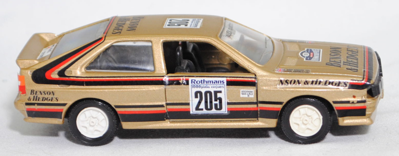 Audi quattro (B2, Typ 85Q, VFL, Modell 1980-1982) Rallye, gold, BENSON & HEDGES / 1986 / Rothmans / 1000 pistes canjuers / 205, Andy Dawson / Kevin Gormley, VEREM, 1:43, m