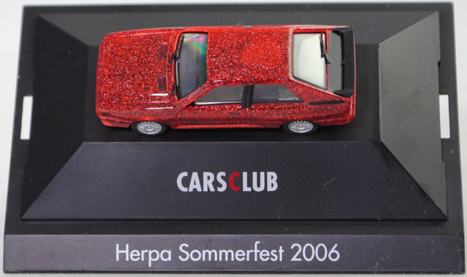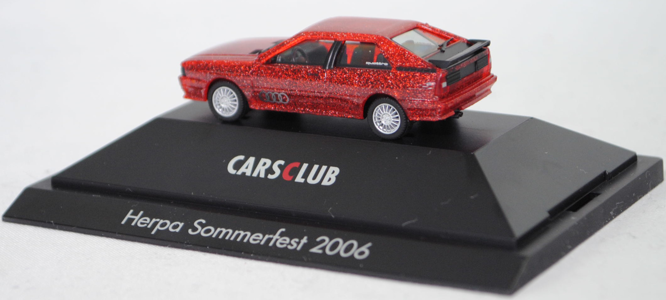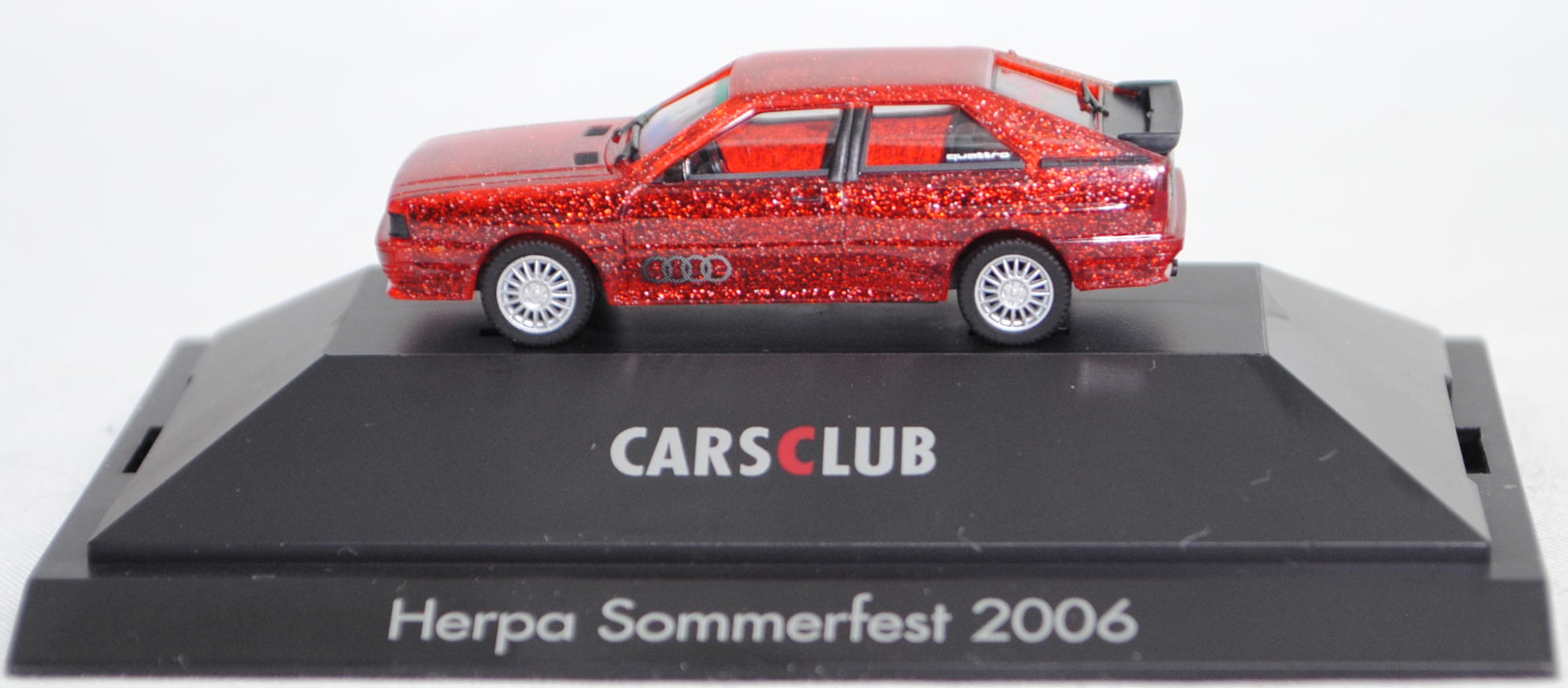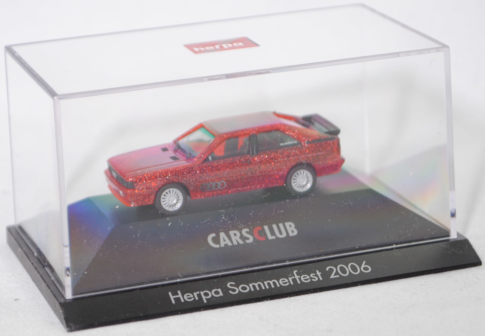 Audi quattro (B2, Typ 85Q, VFL (Vorfacelift), Modell 1980-1982), rot transparent glitzereffekt, Herpa, 1:87, PC-Box (Herpa Sommerfest 2006 für Mitglieder Cars Club)